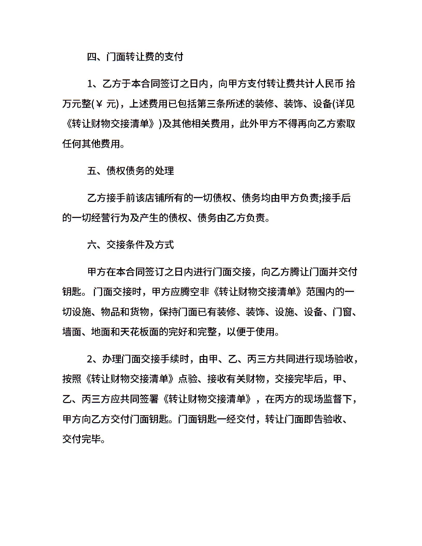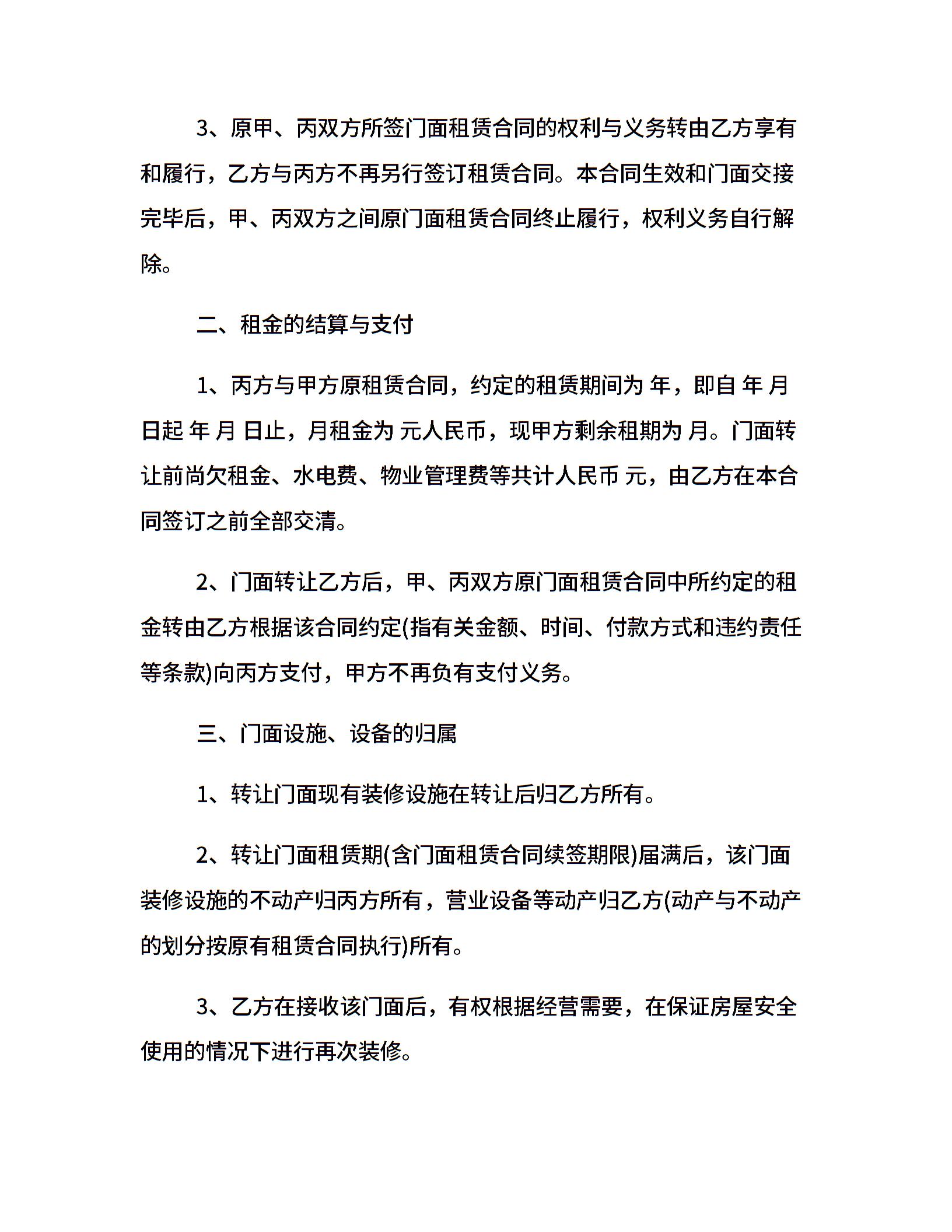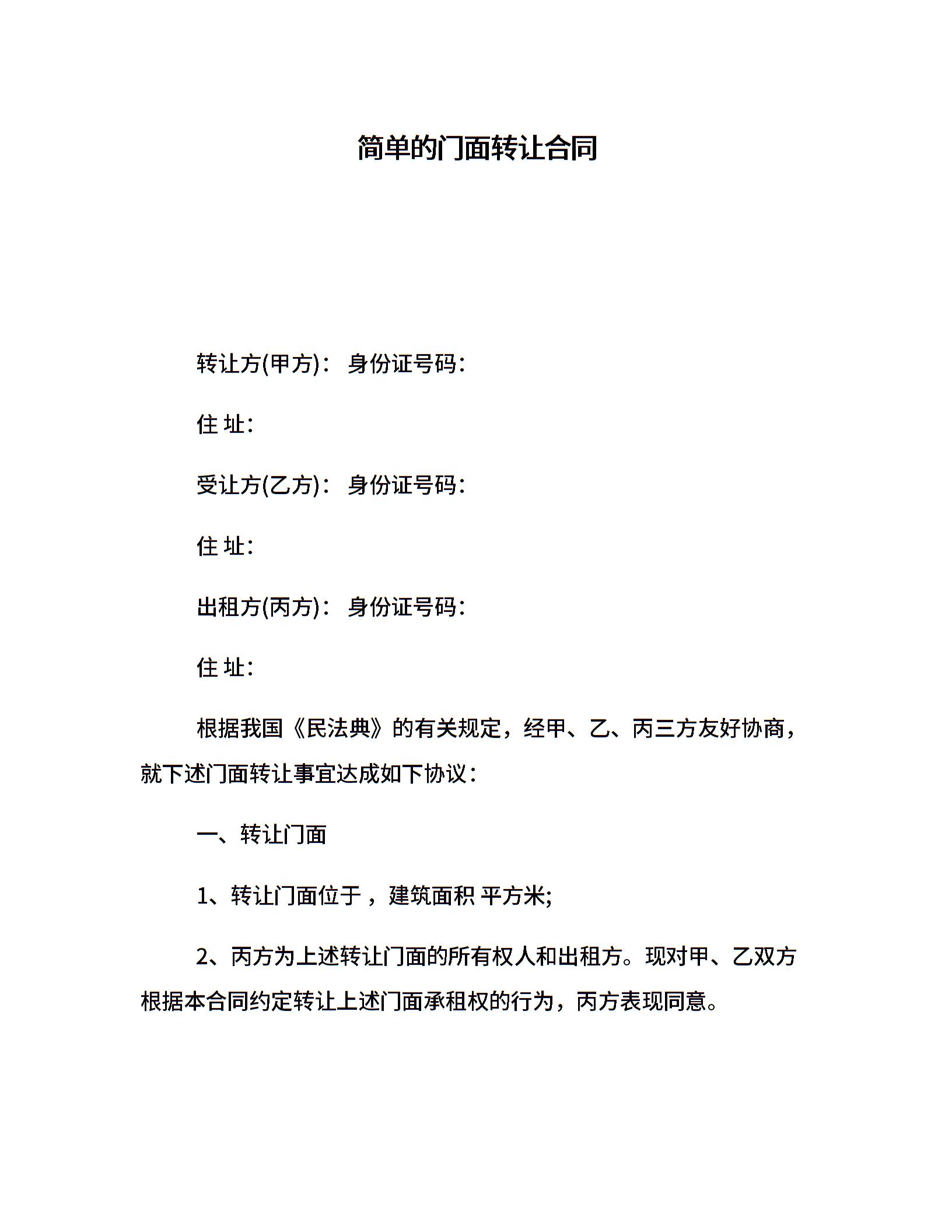 简单的门面转让合同