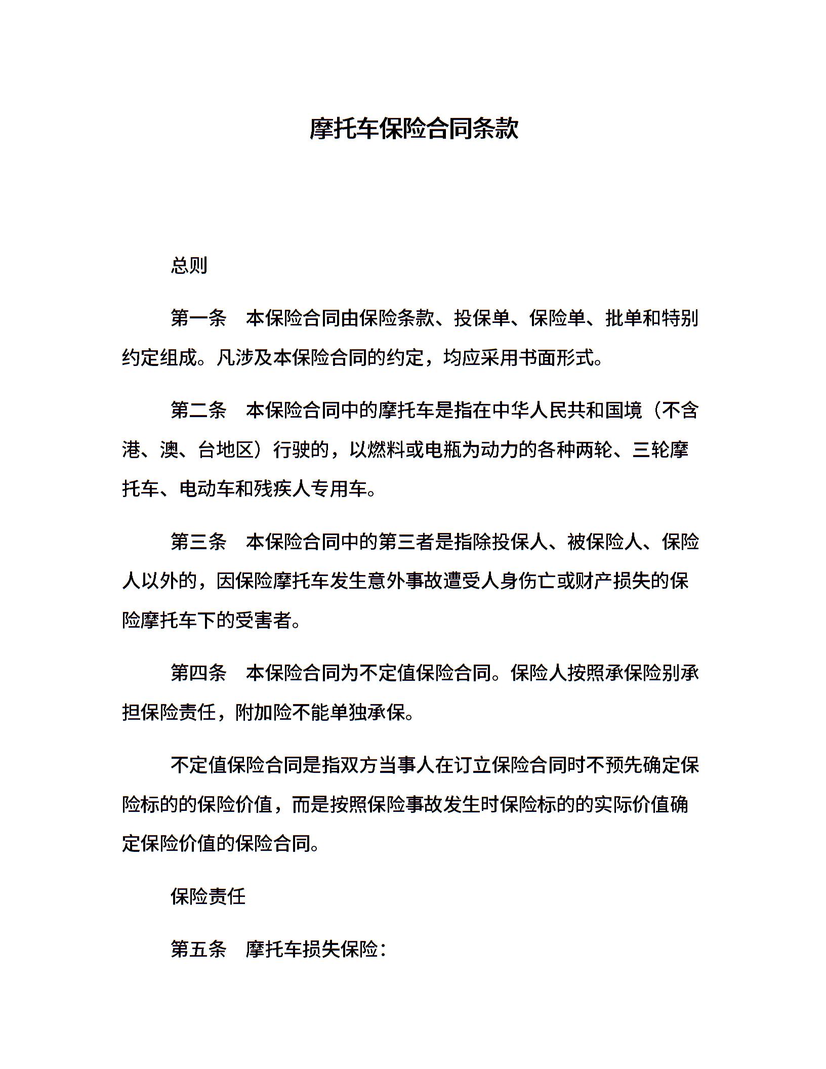 摩托车保险合同条款