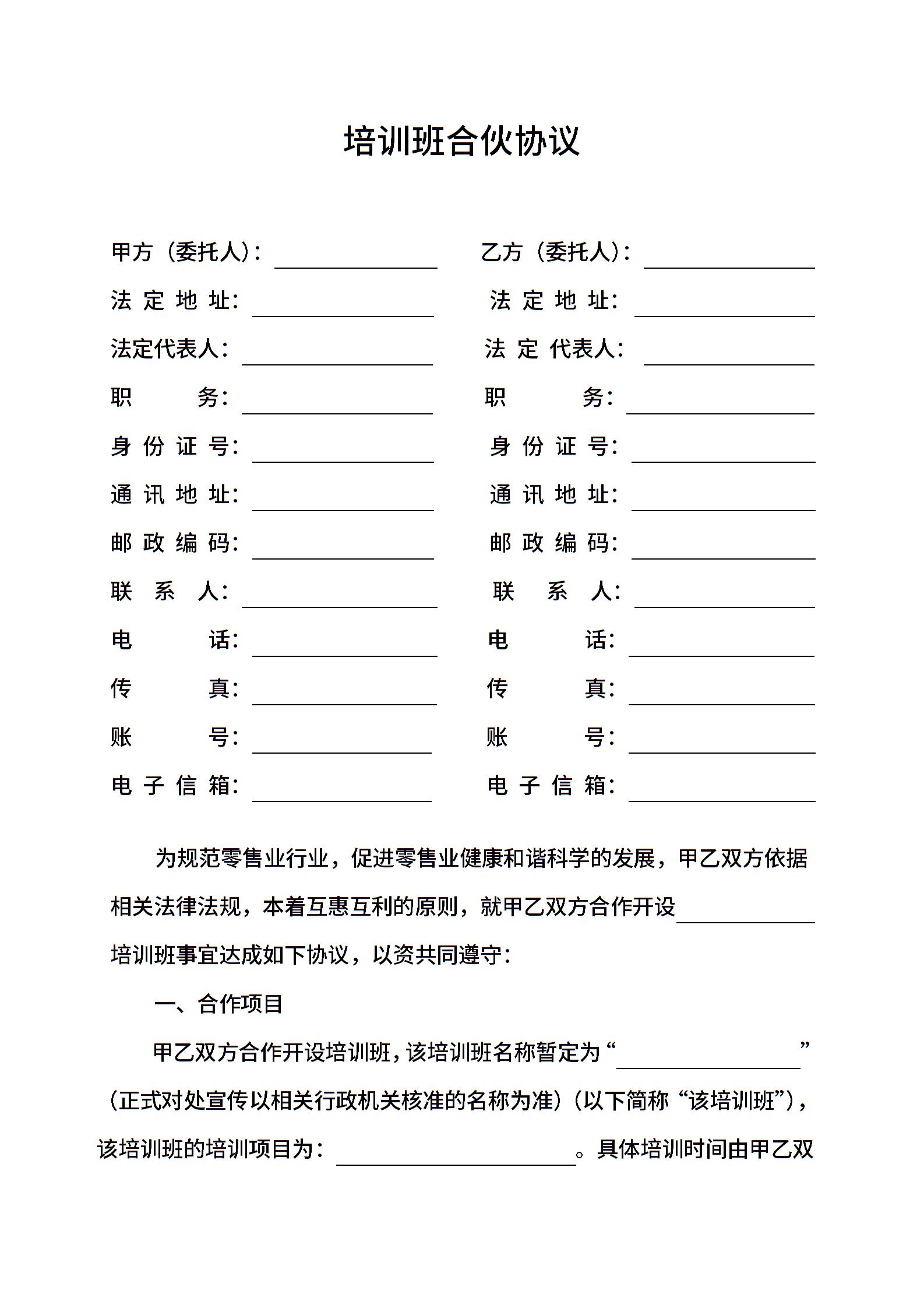 培训班合伙协议0
