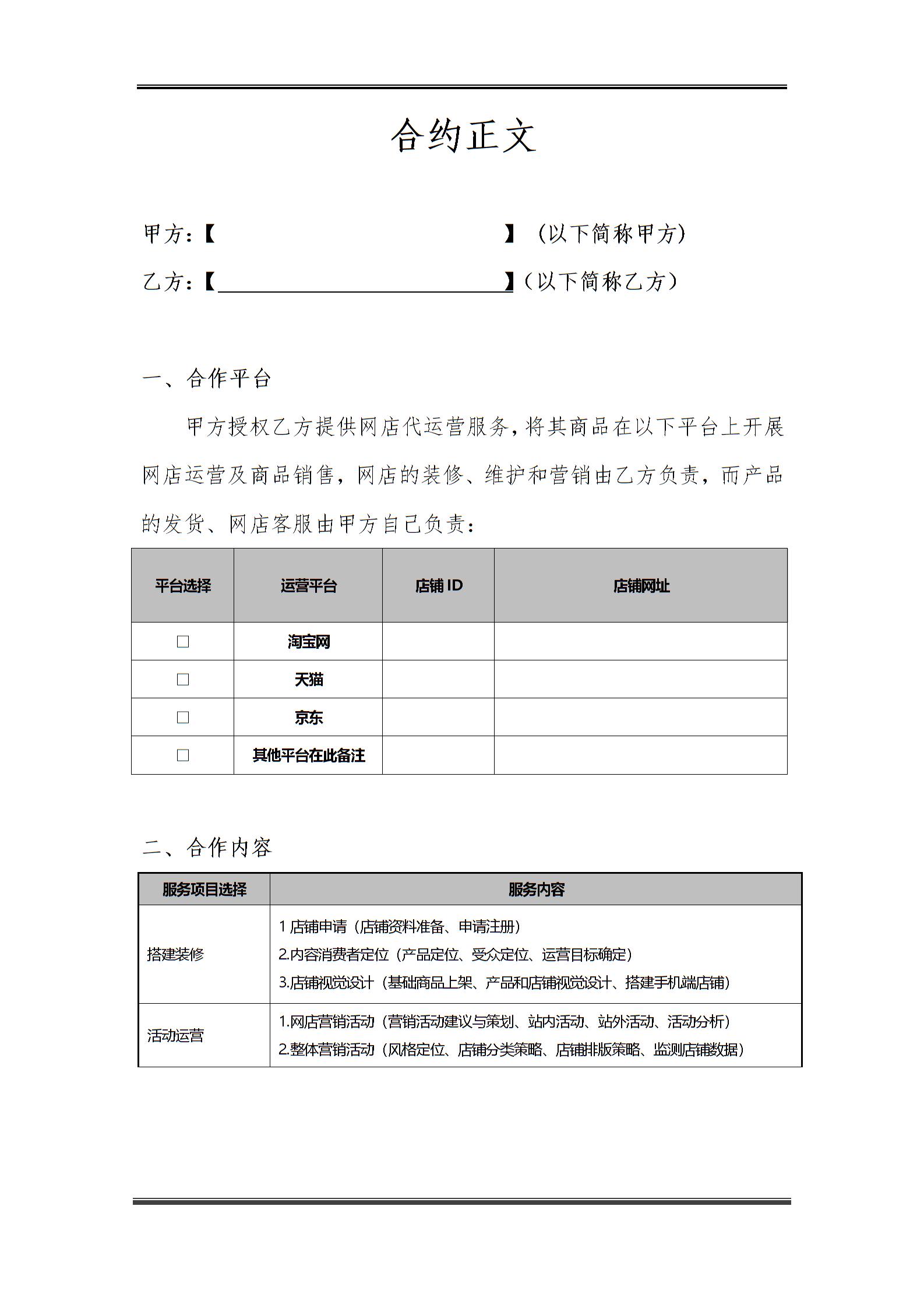 代运营服务合作协议