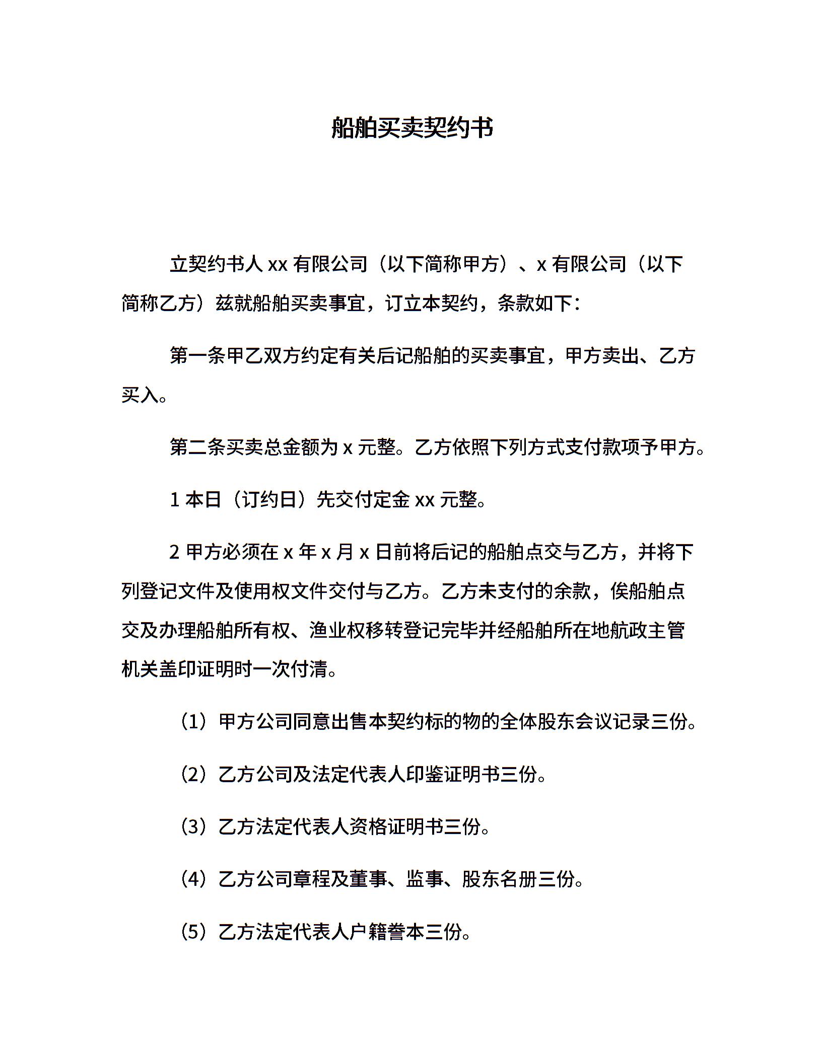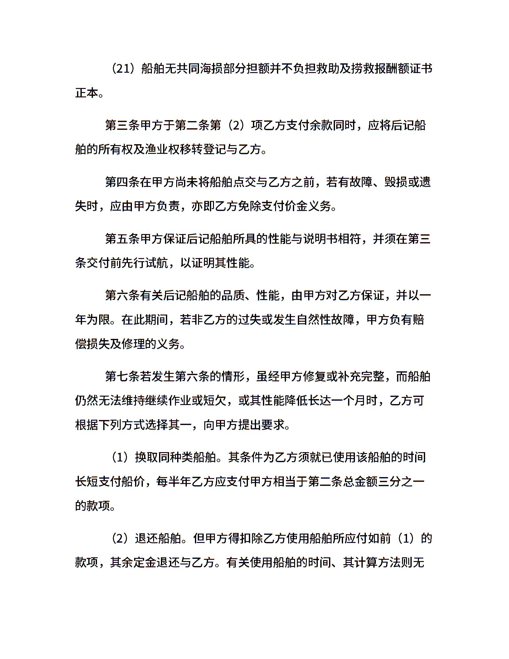 船舶买卖契约书