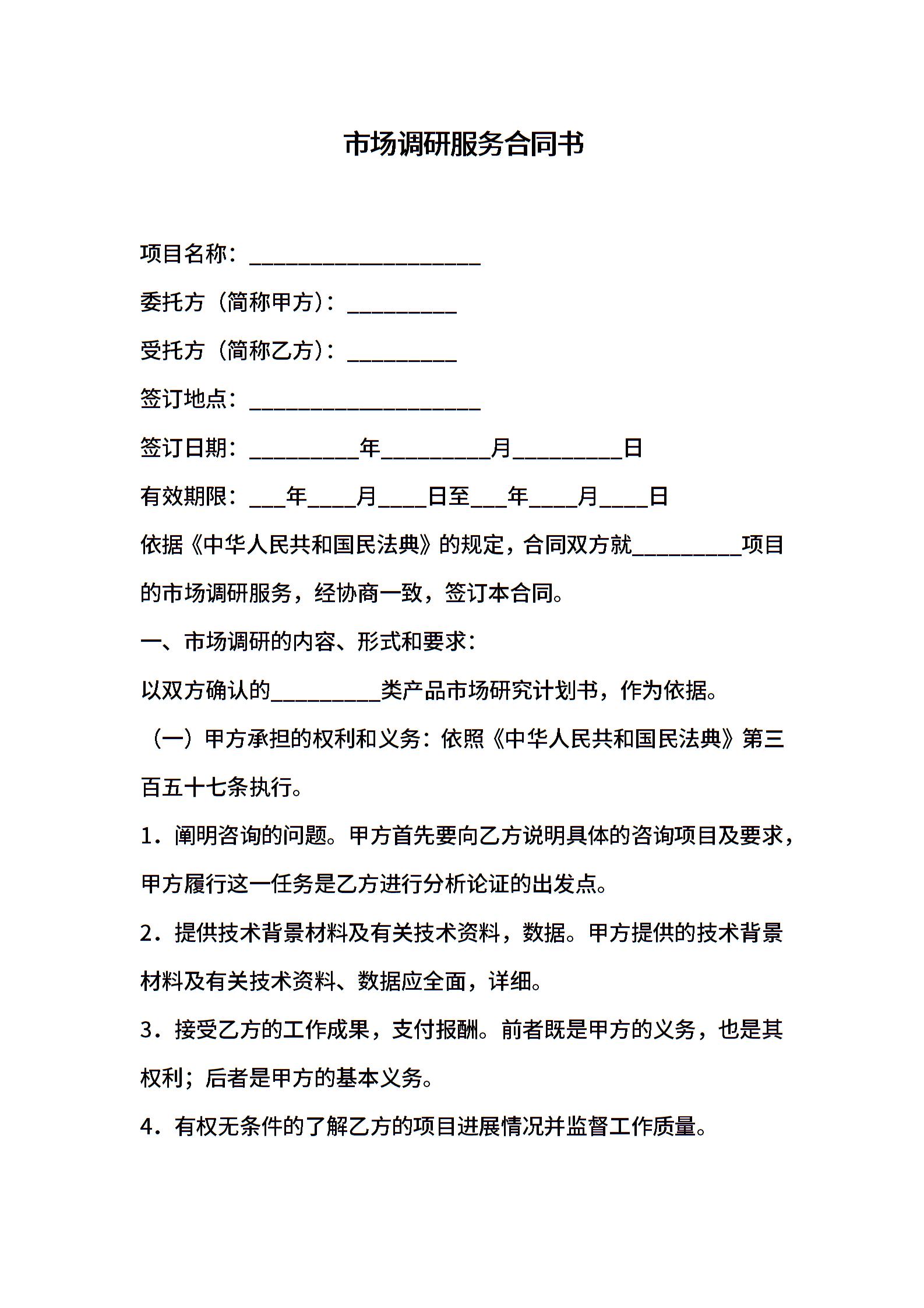 市场调研服务合同书