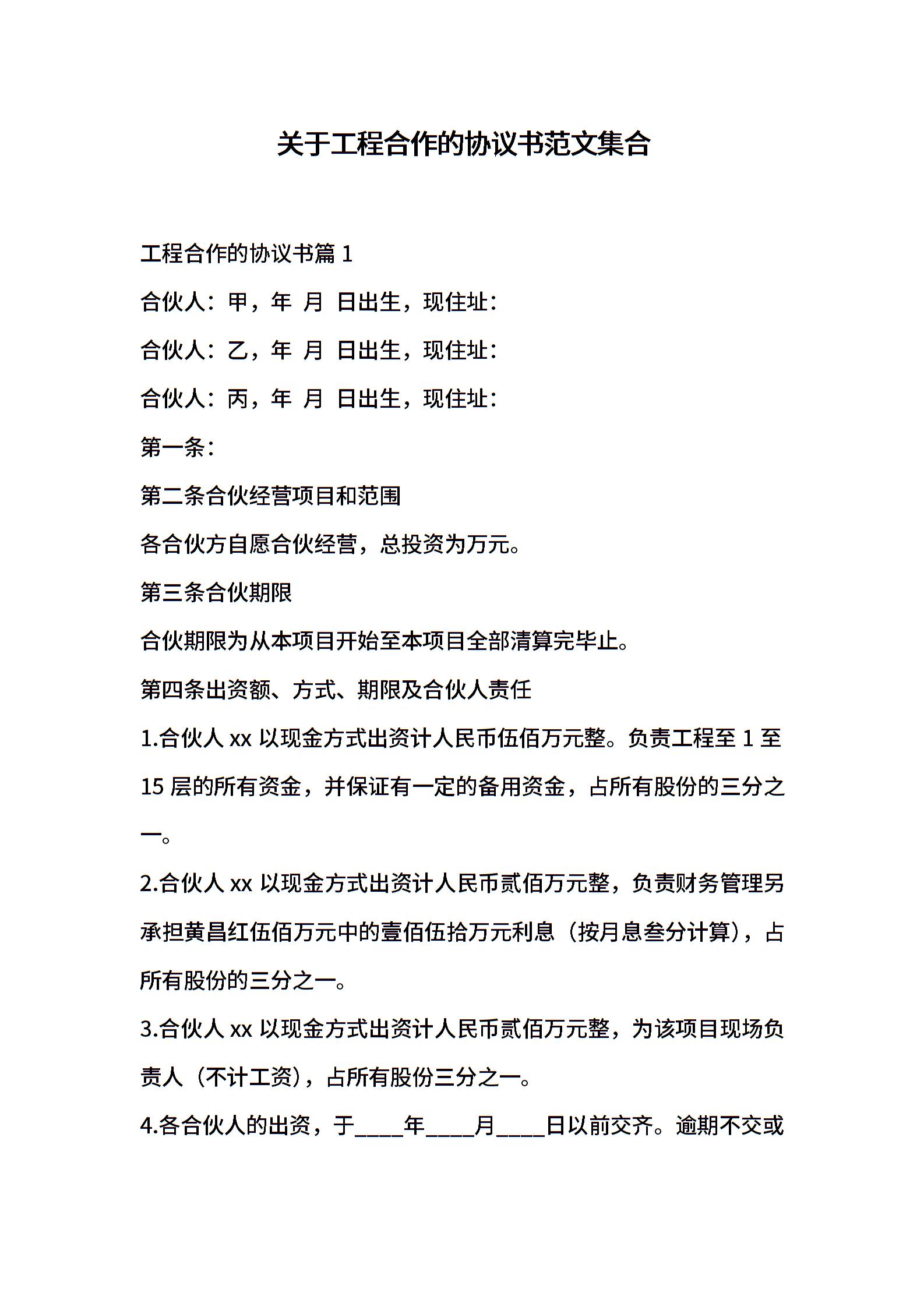 关于工程合作的协议书范文集合