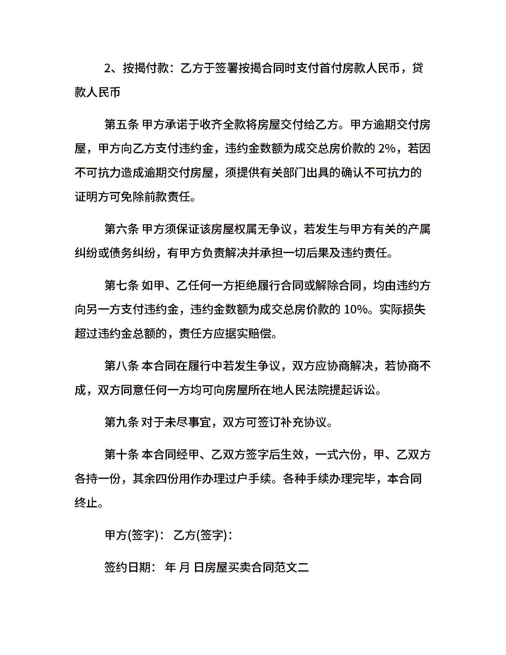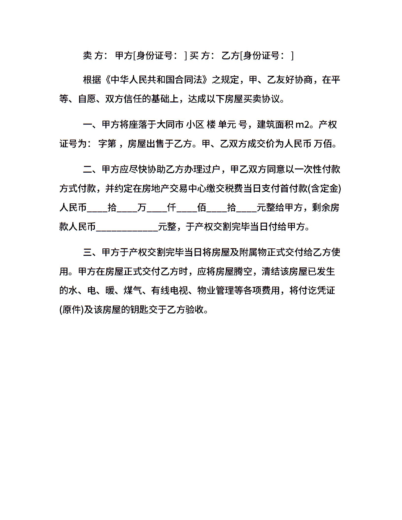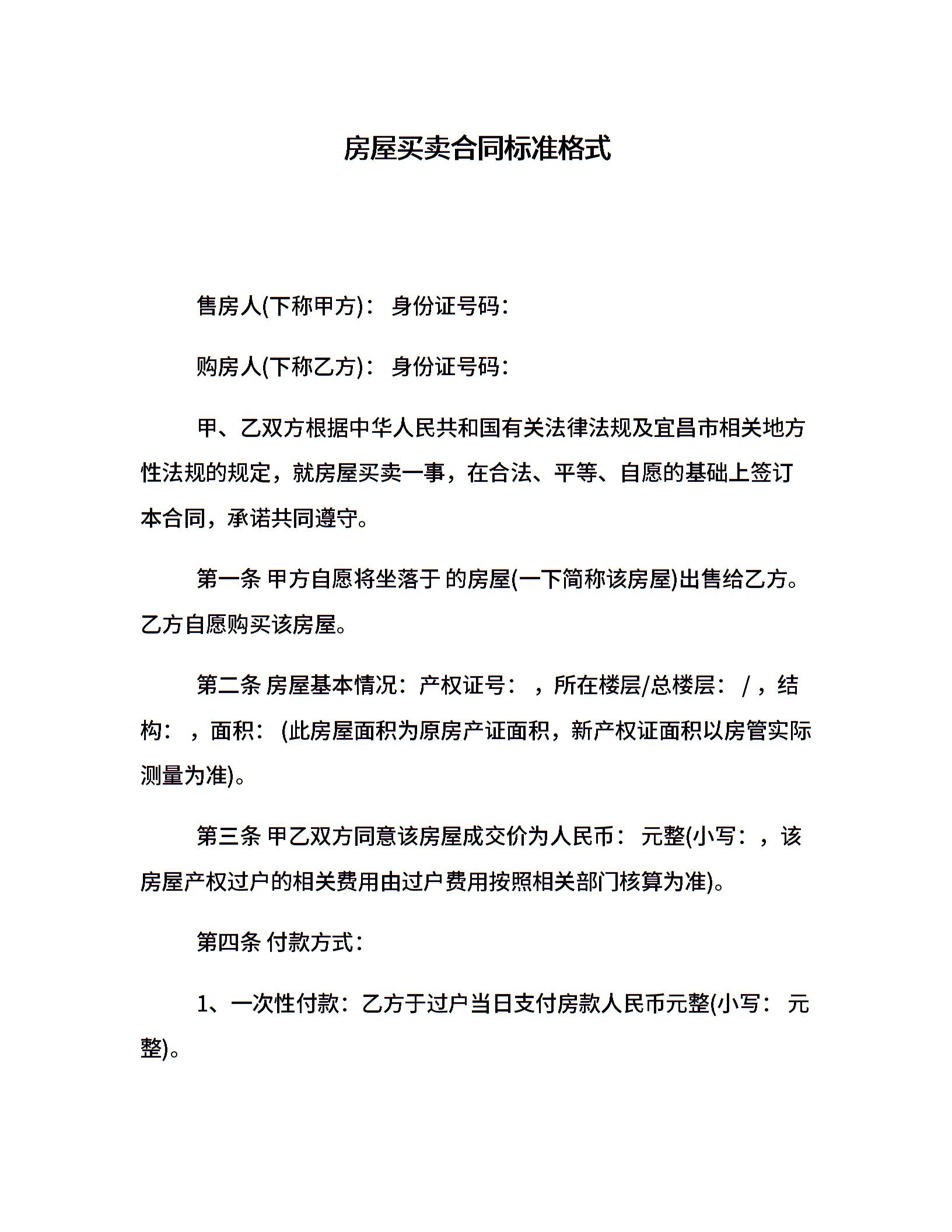房屋买卖合同标准格式