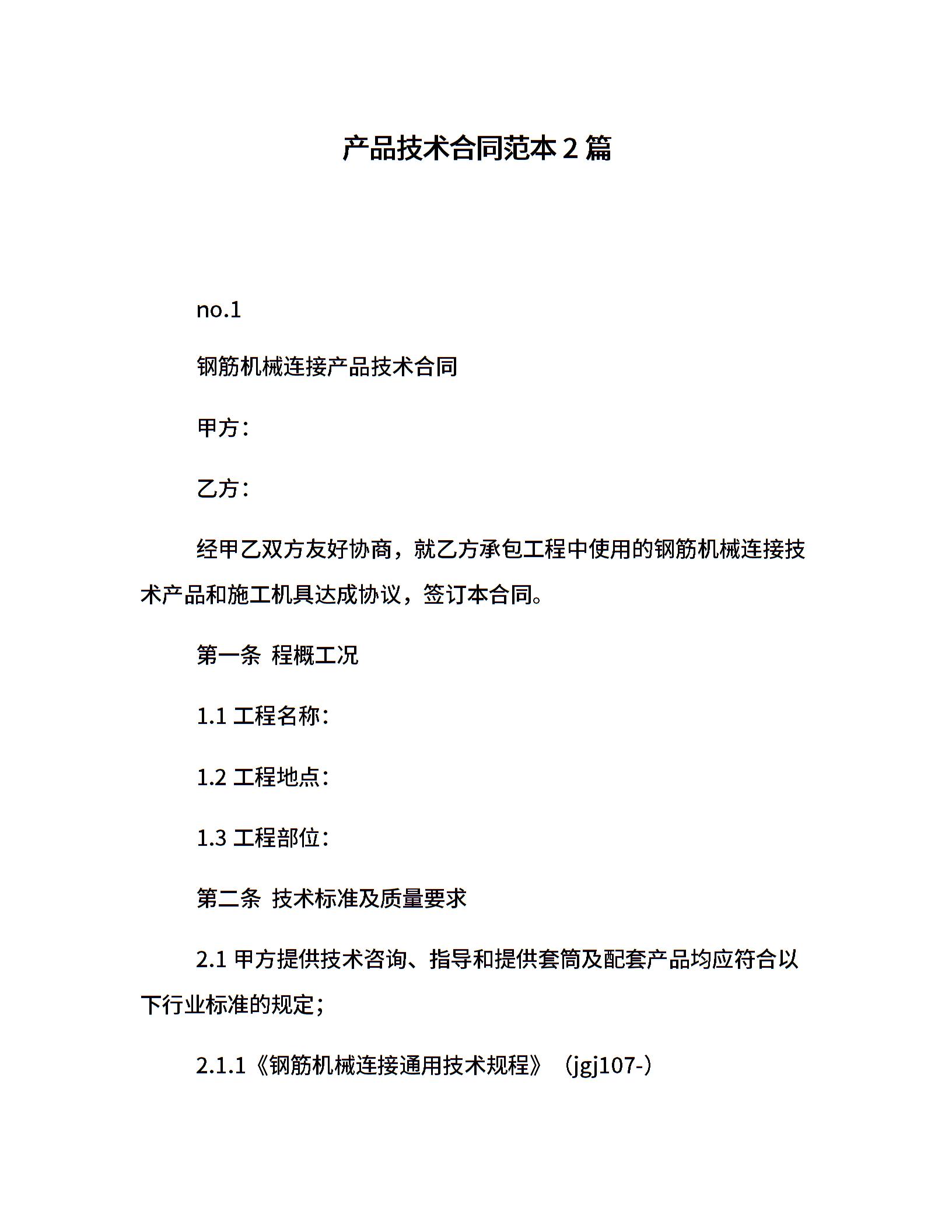 产品技术合同范本2篇