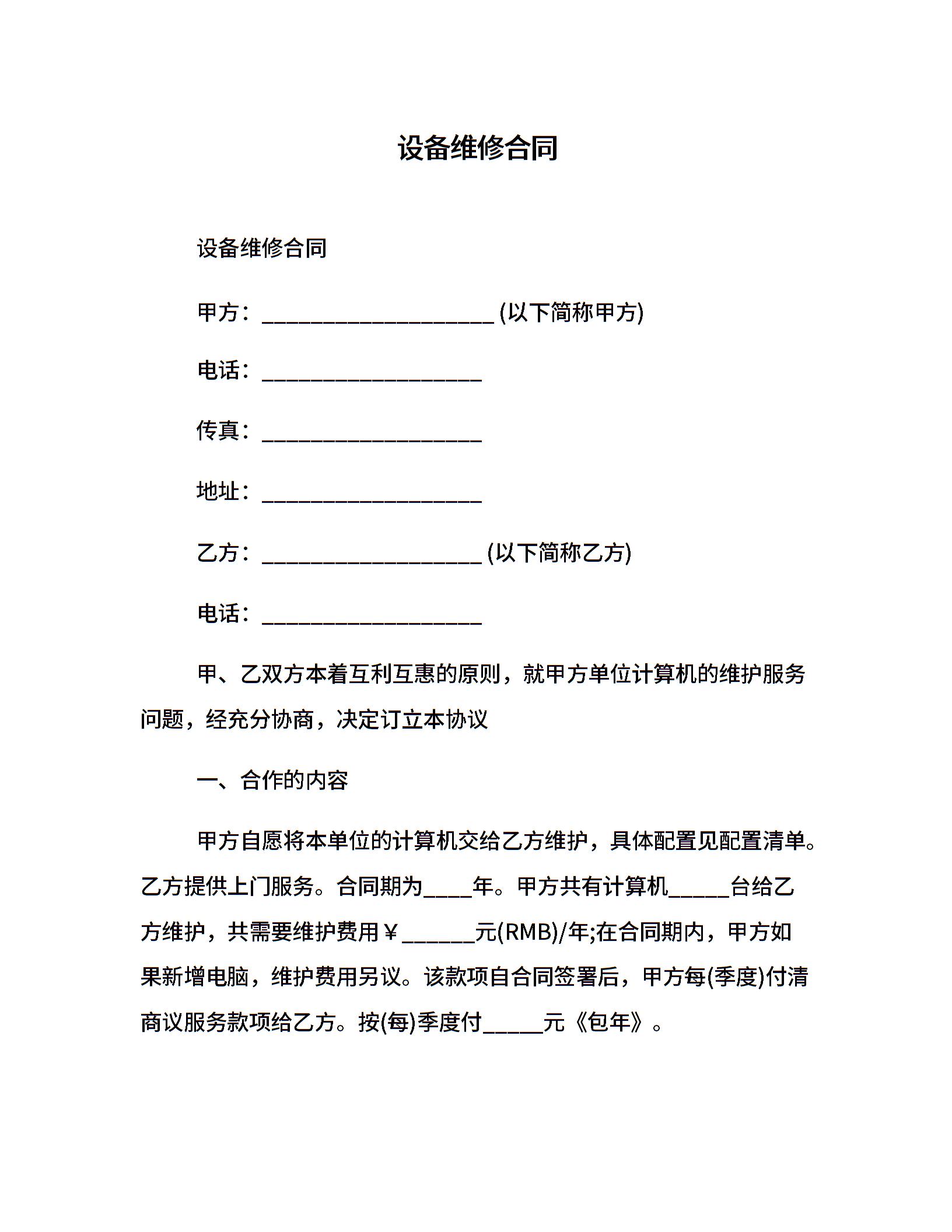 设备维修合同