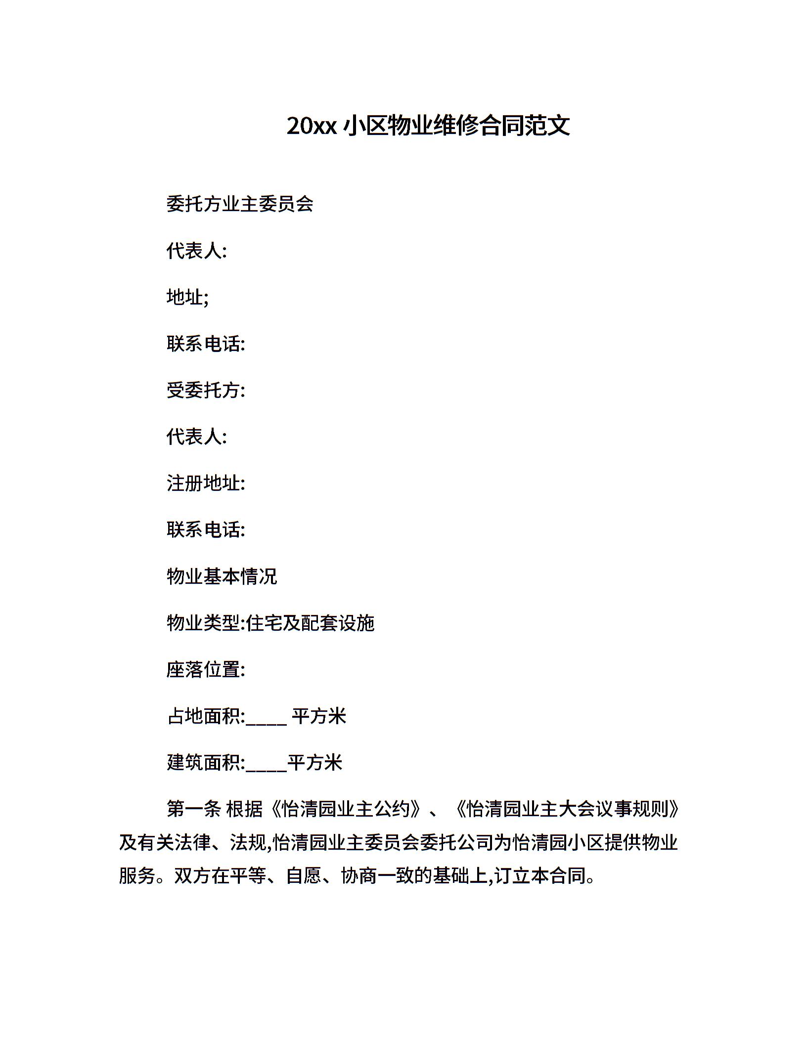 20xx小区物业维修合同范文
