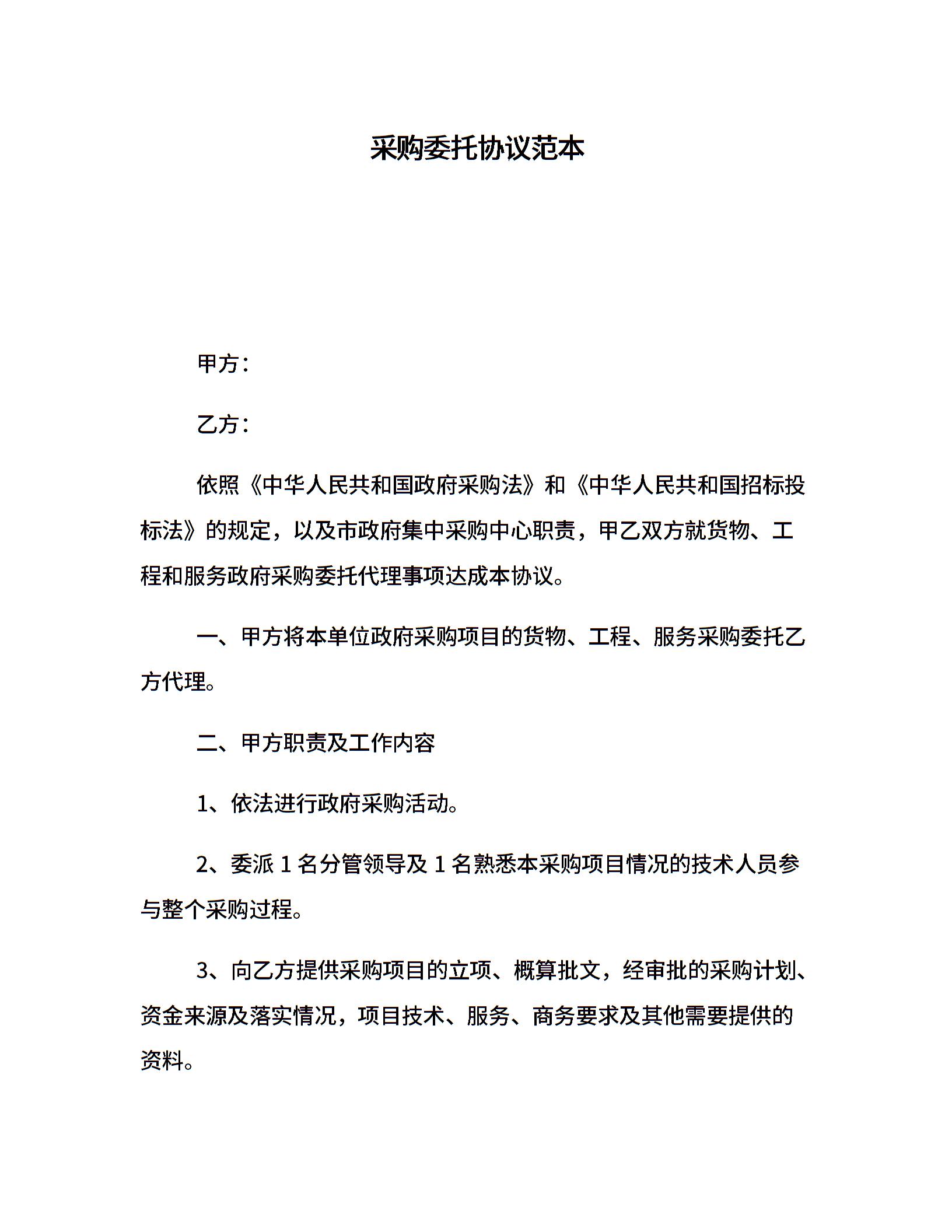 采购委托协议范本