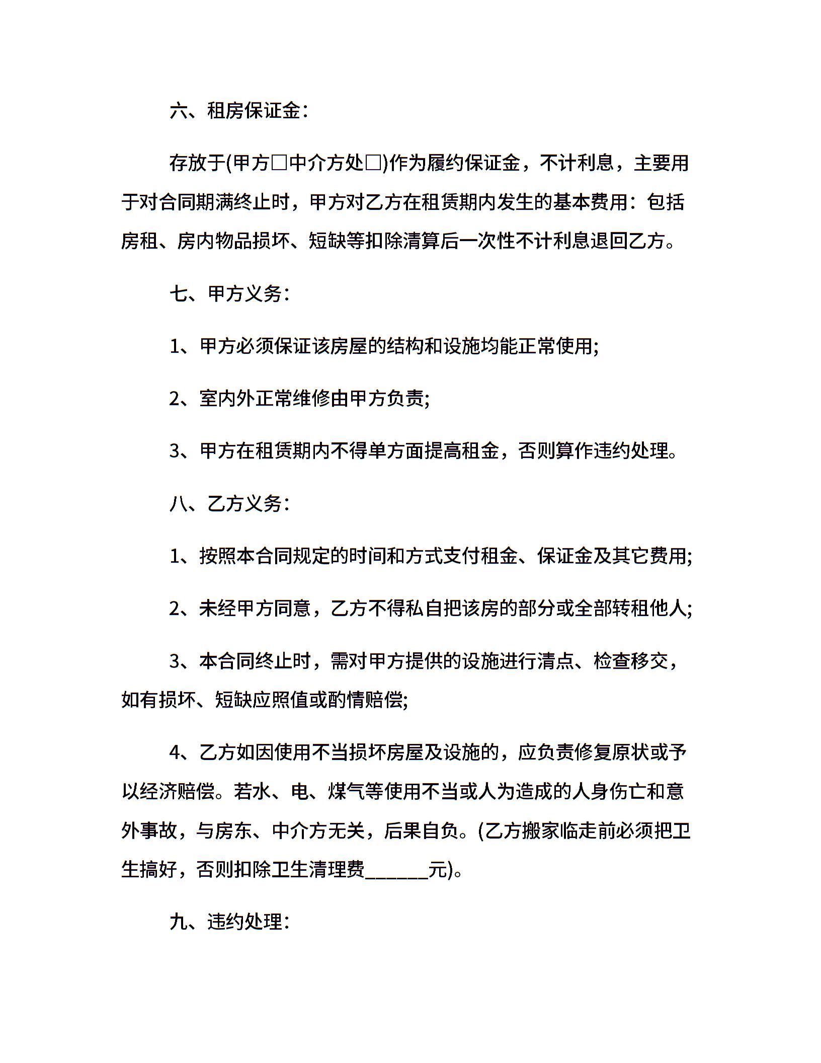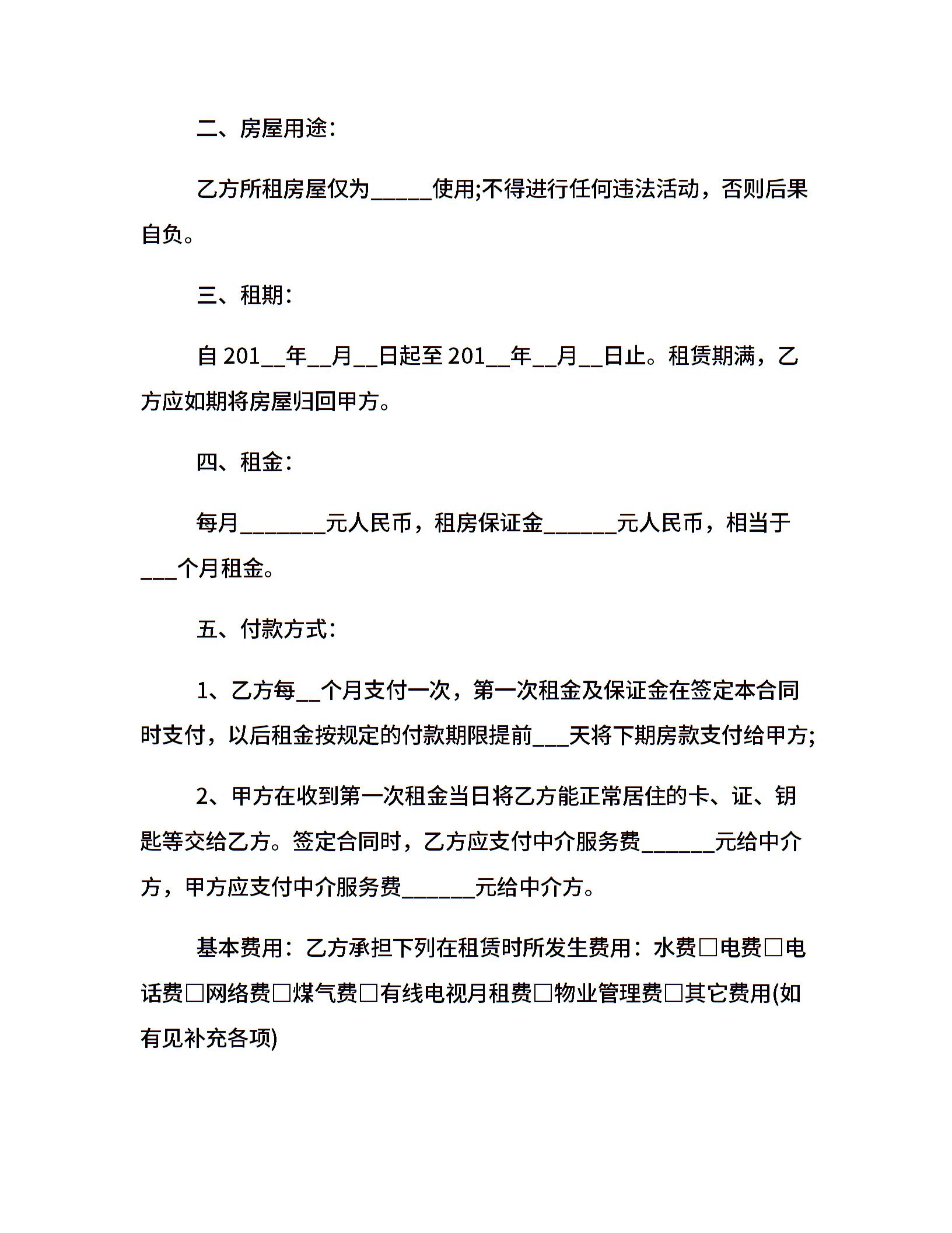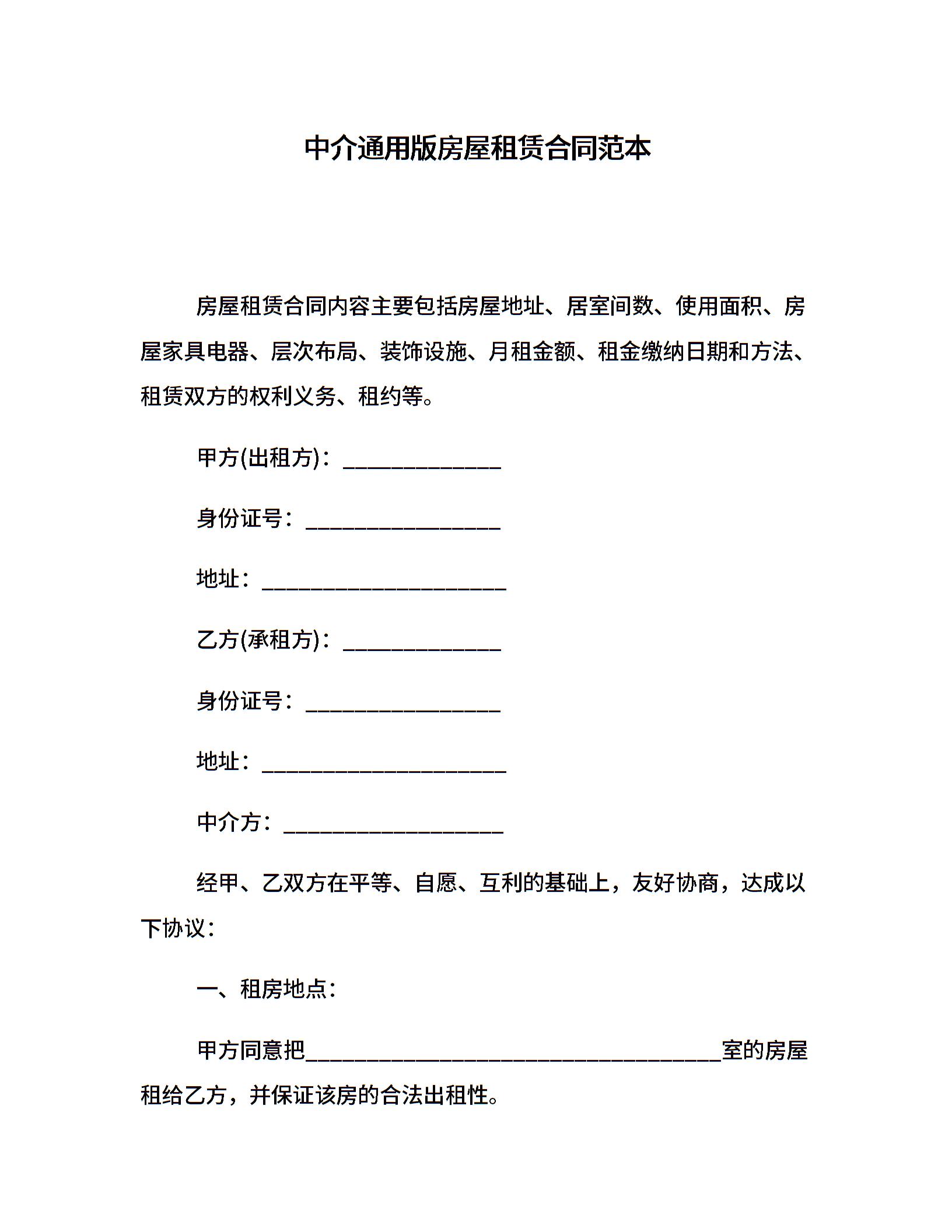 中介通用版房屋租赁合同范本