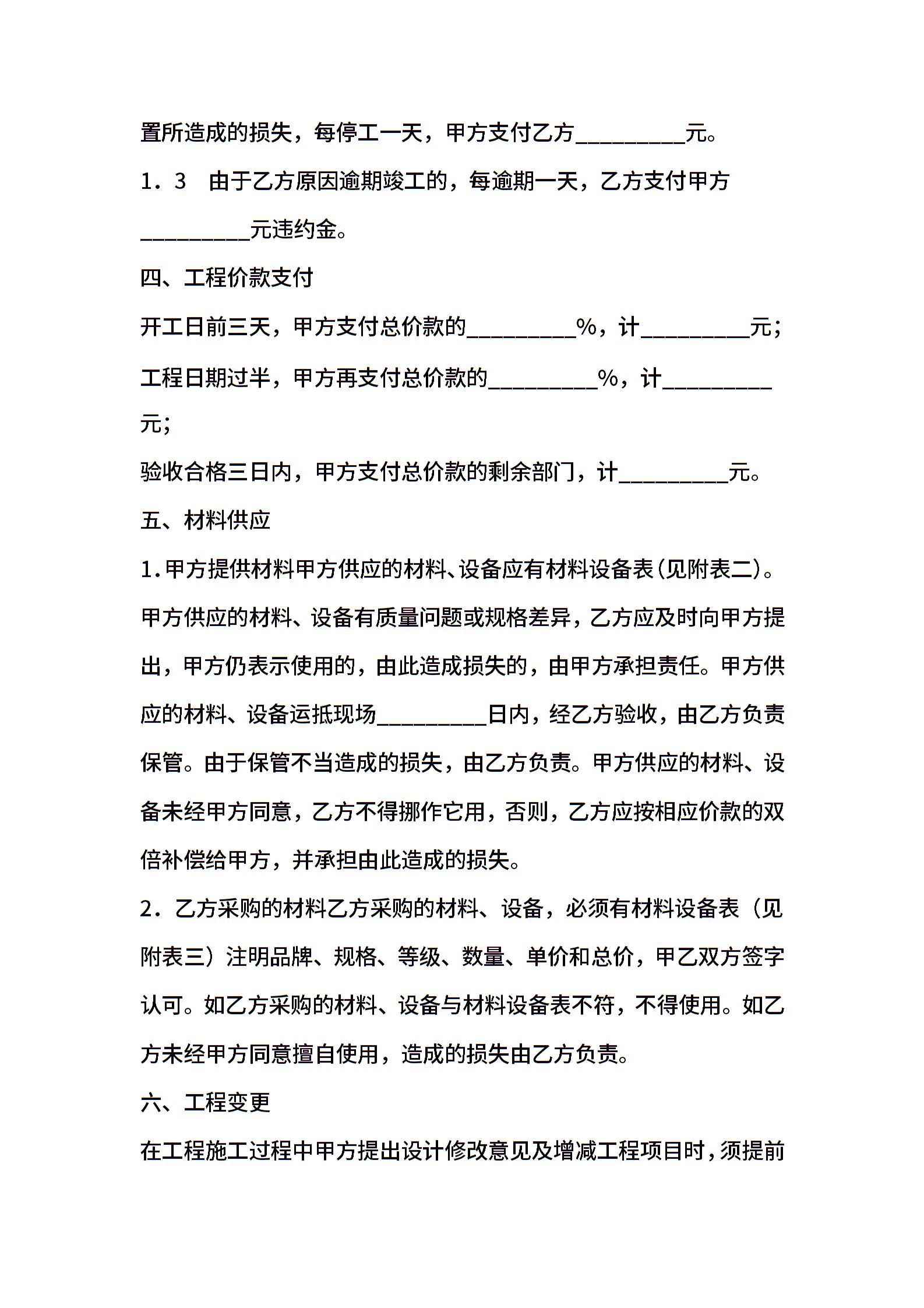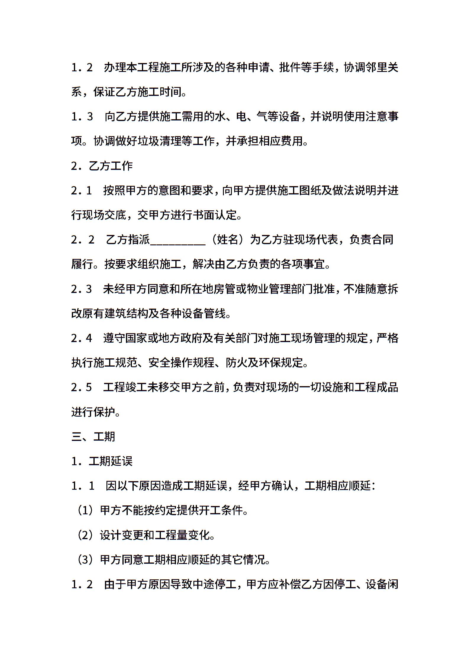 家庭装饰装修施工合同 (2)