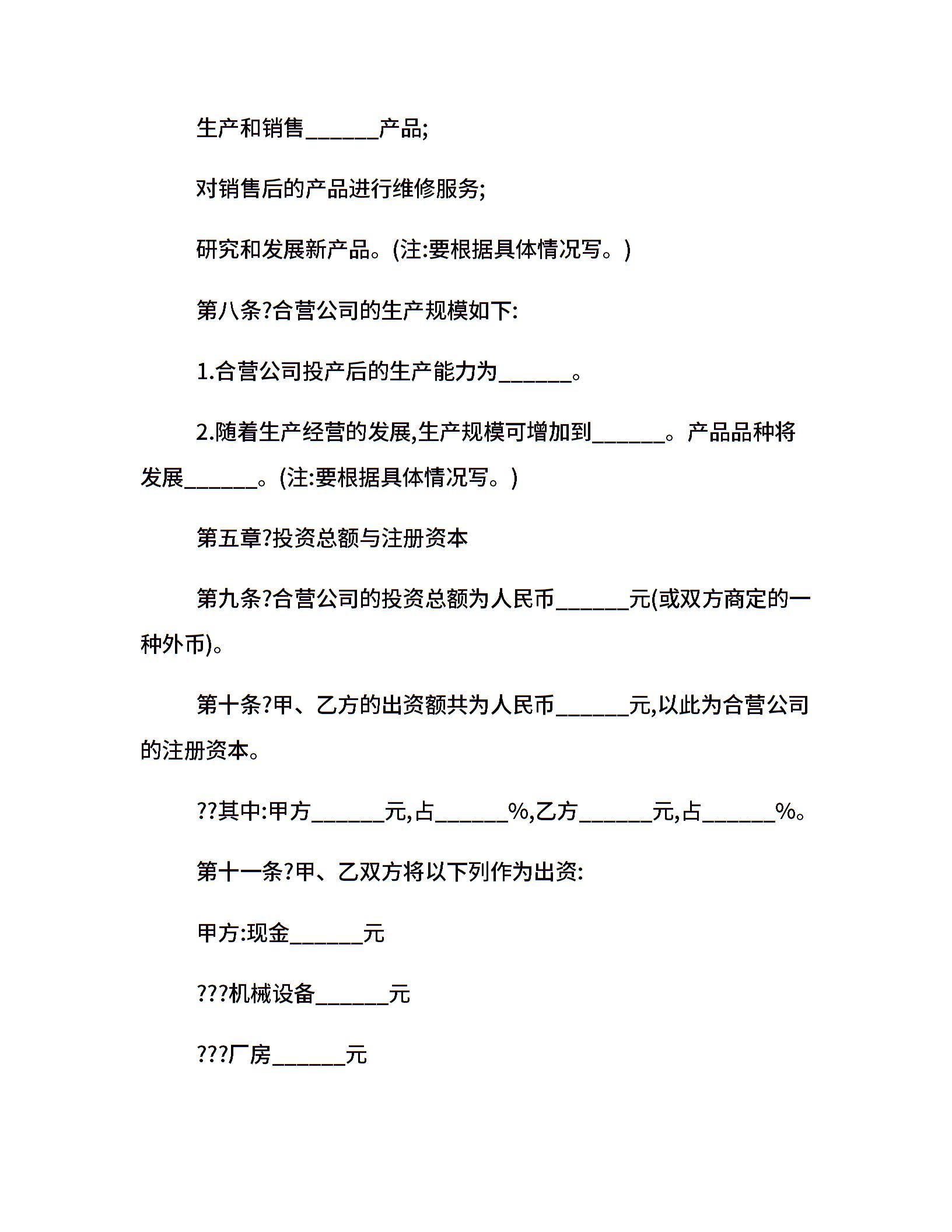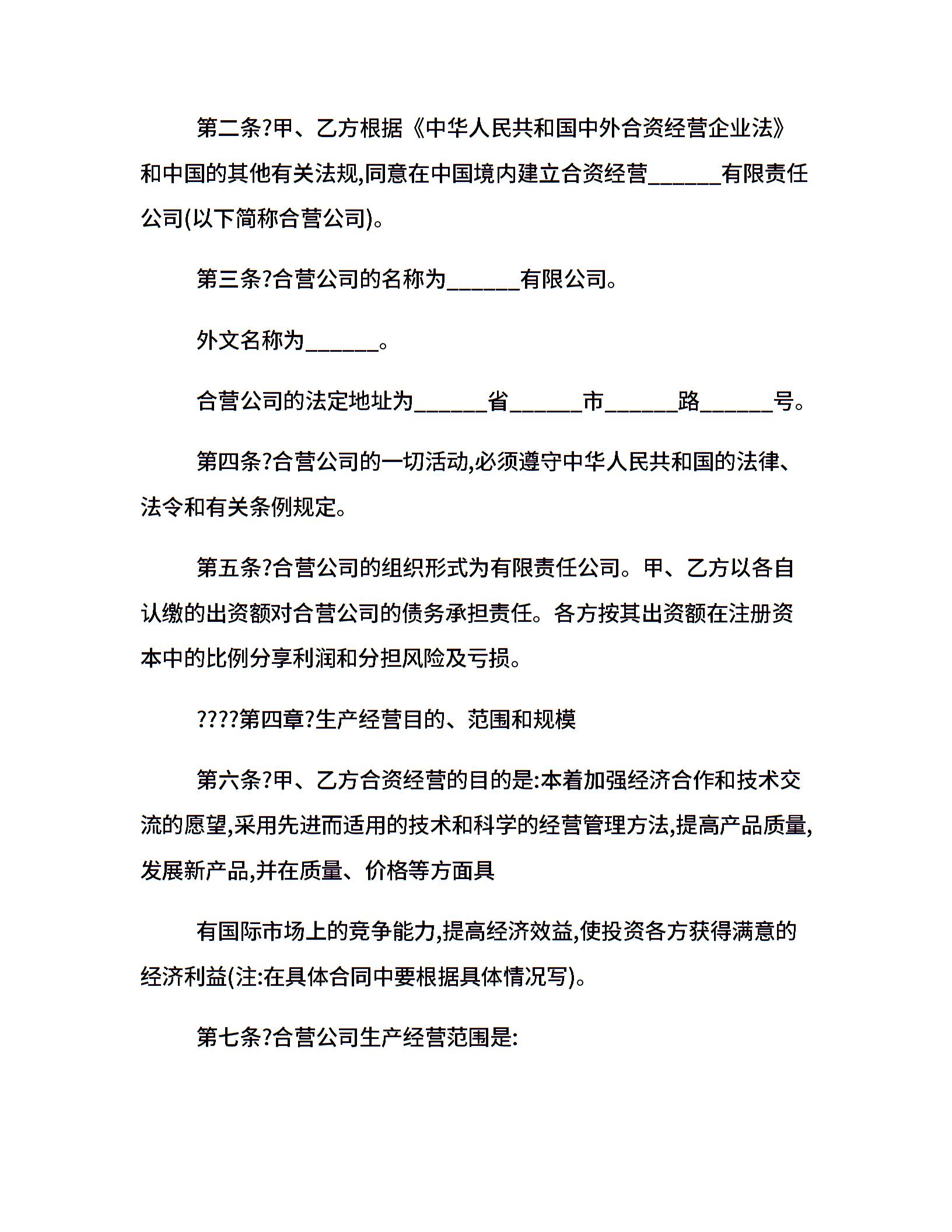 中外合资经营企业合同参考格式