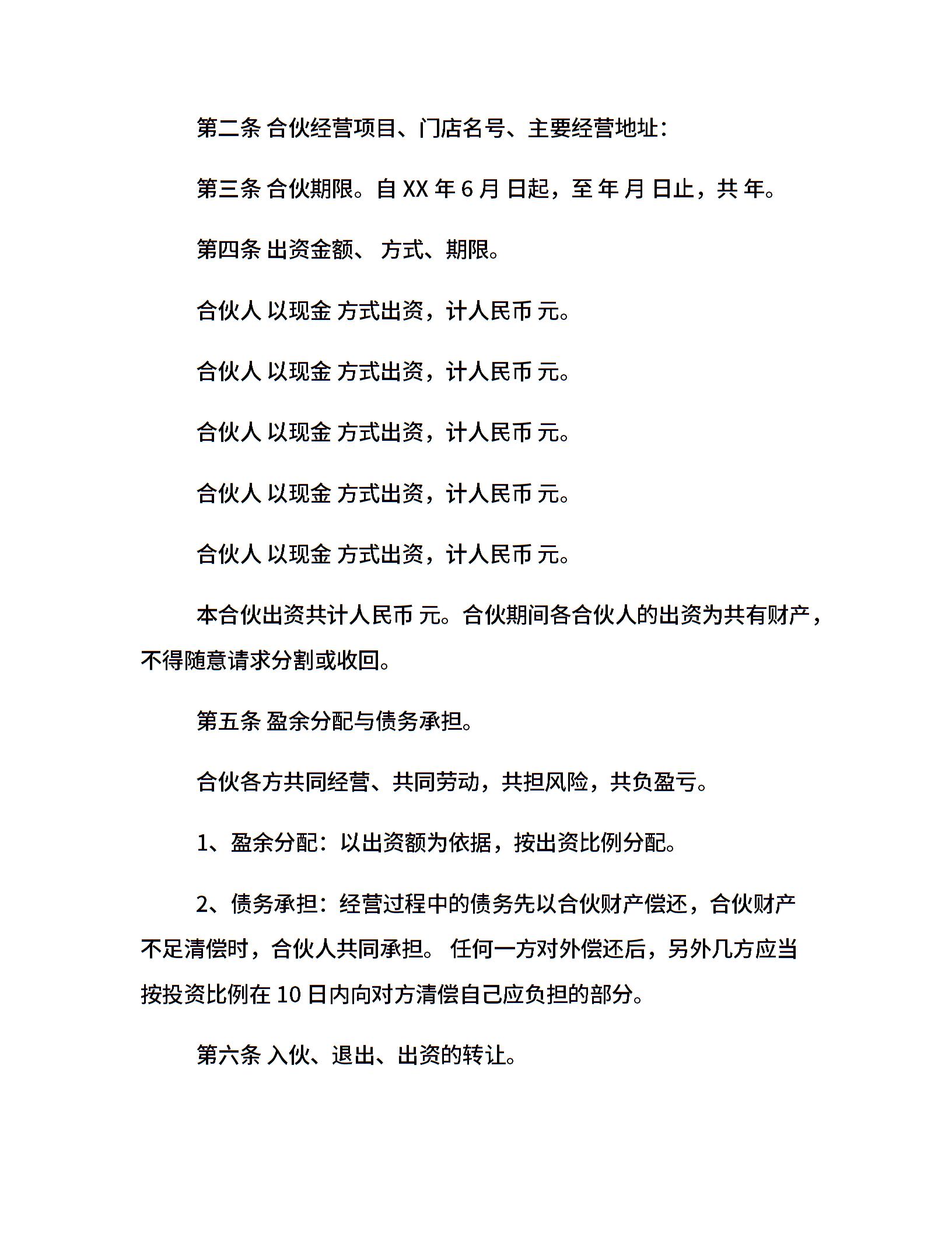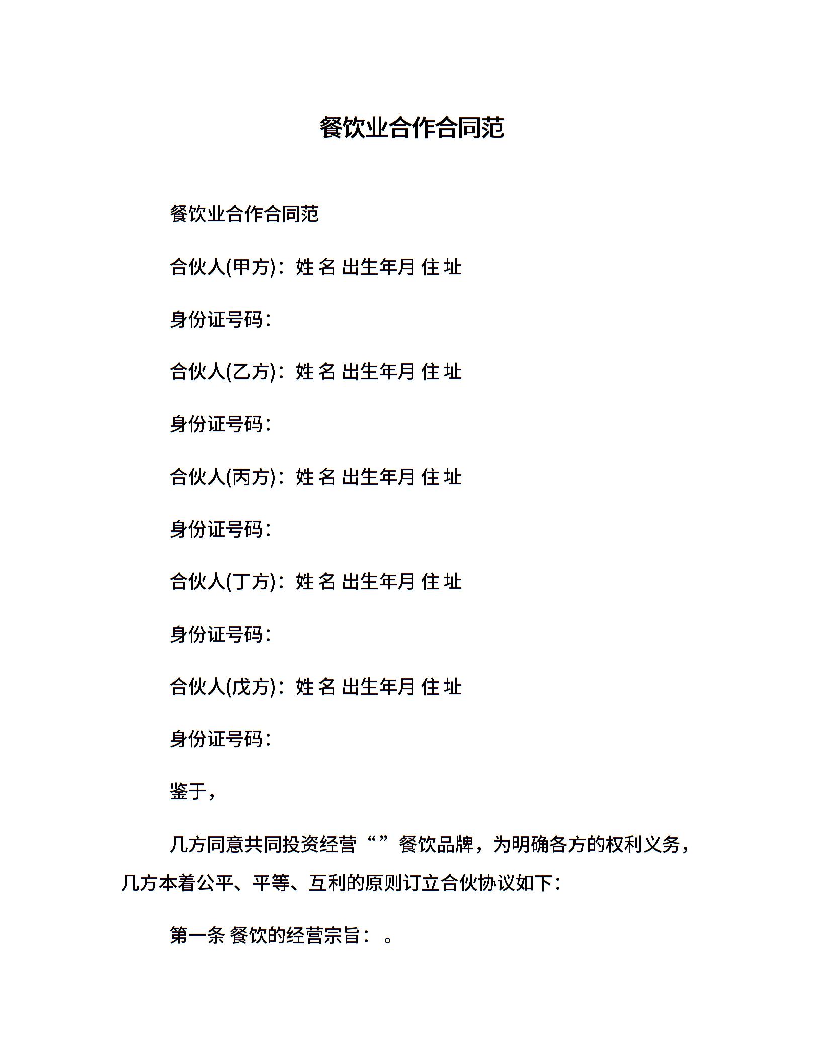 餐饮业合作合同范