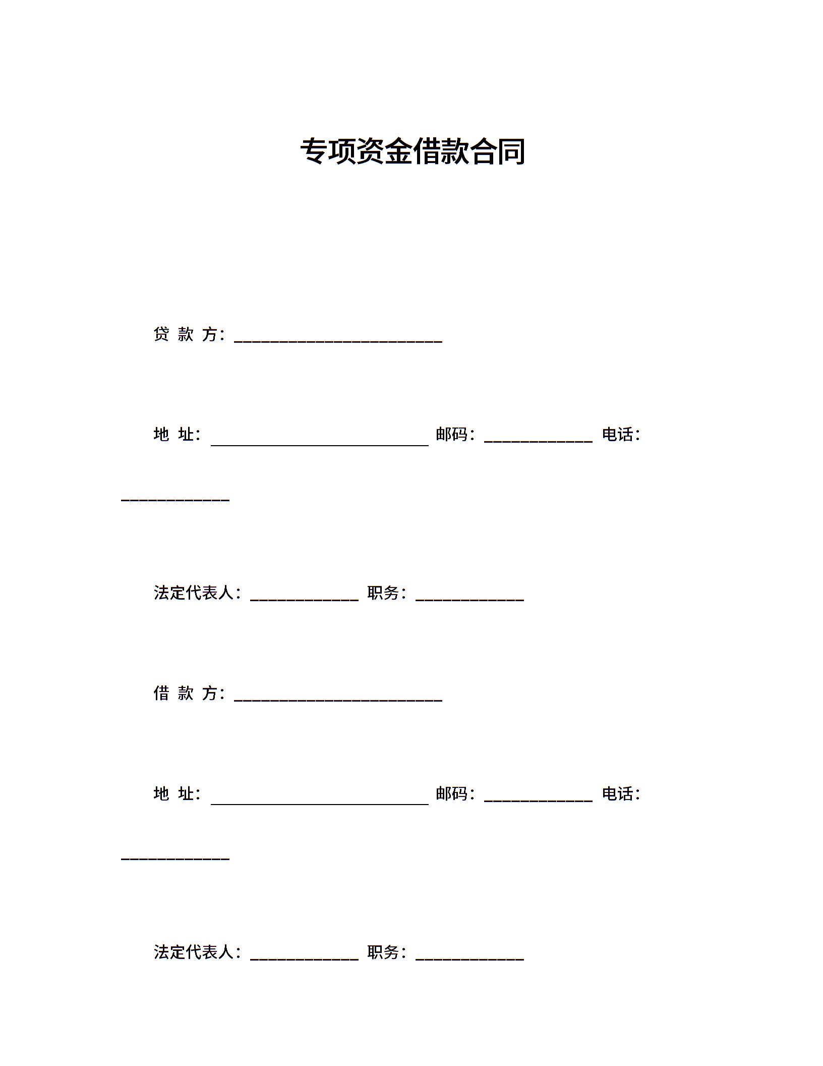 专项资金借款合同