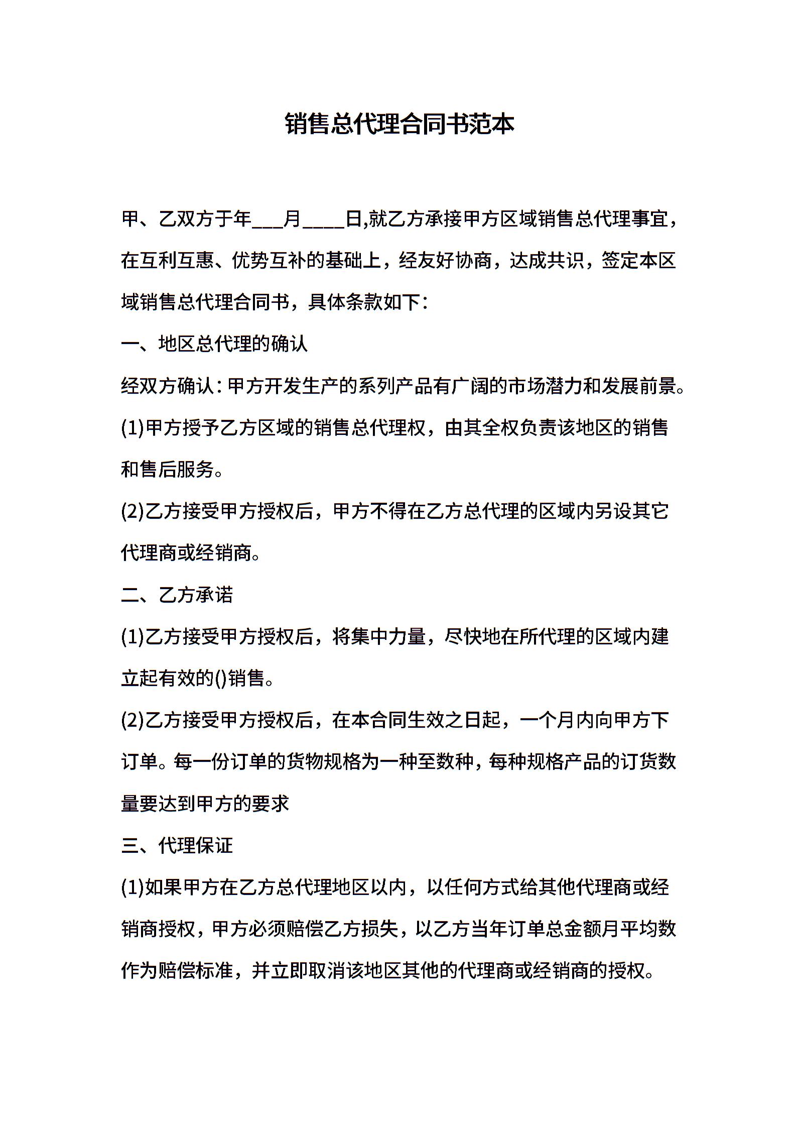 销售总代理合同书范本