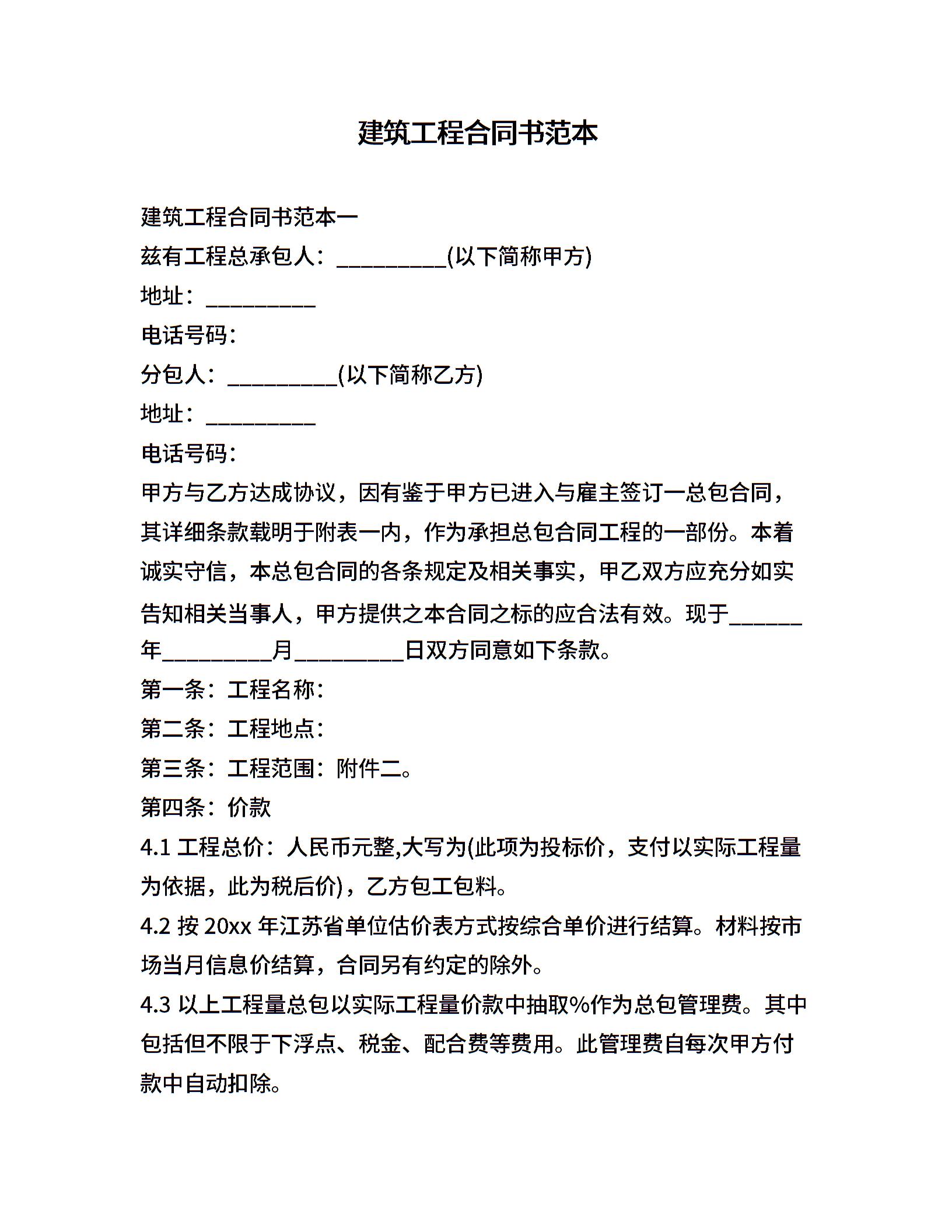 建筑工程合同书范本