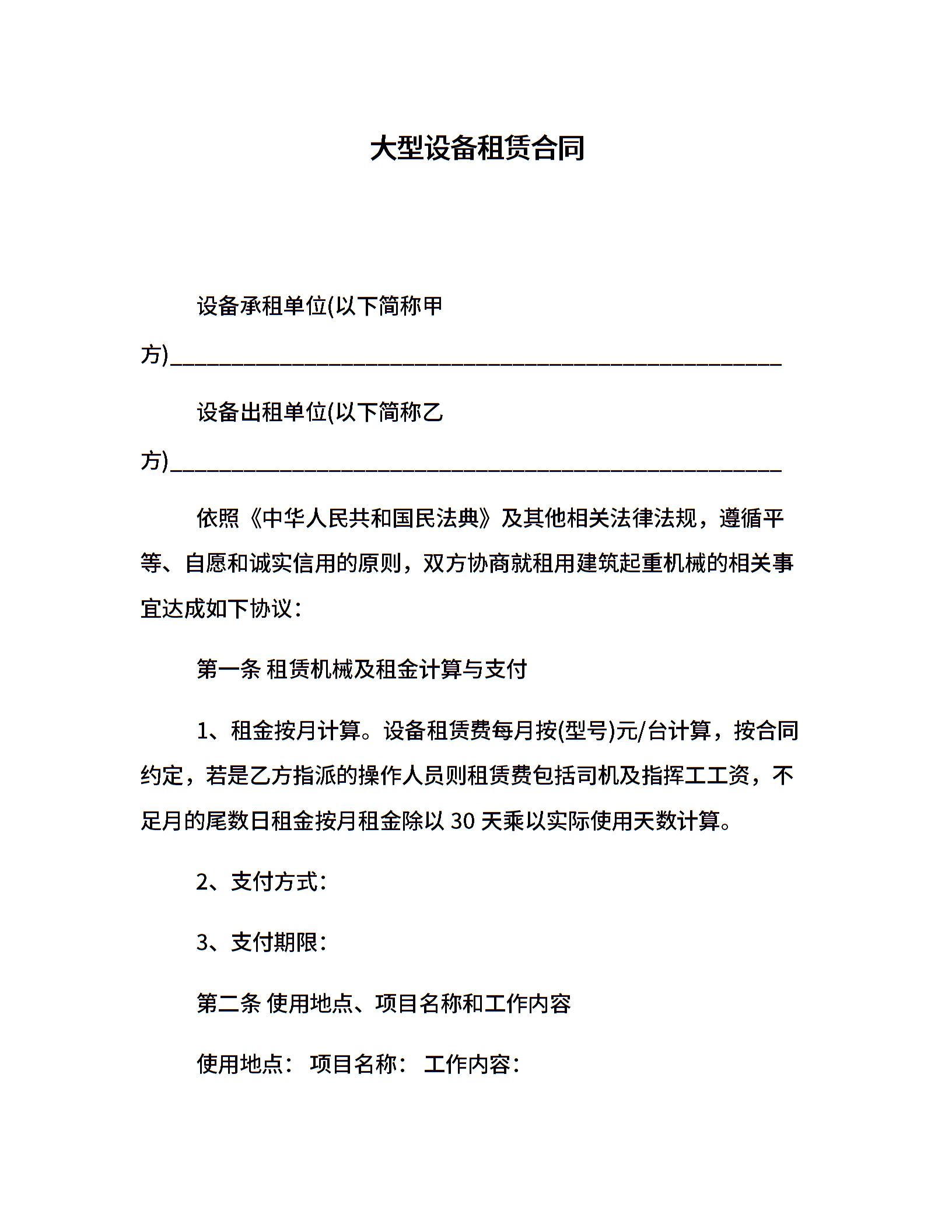 大型设备租赁合同