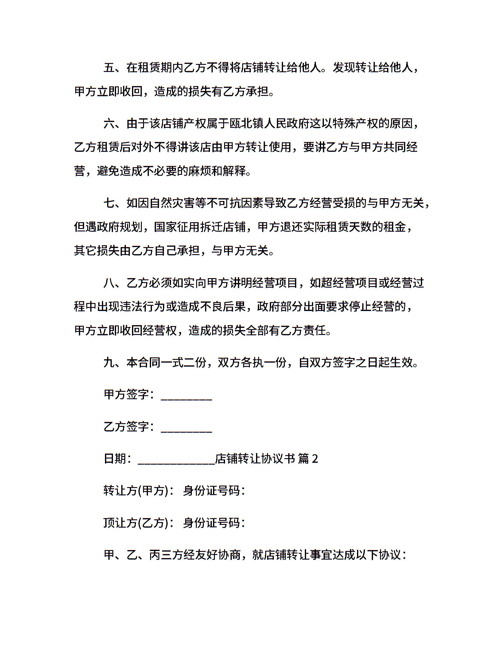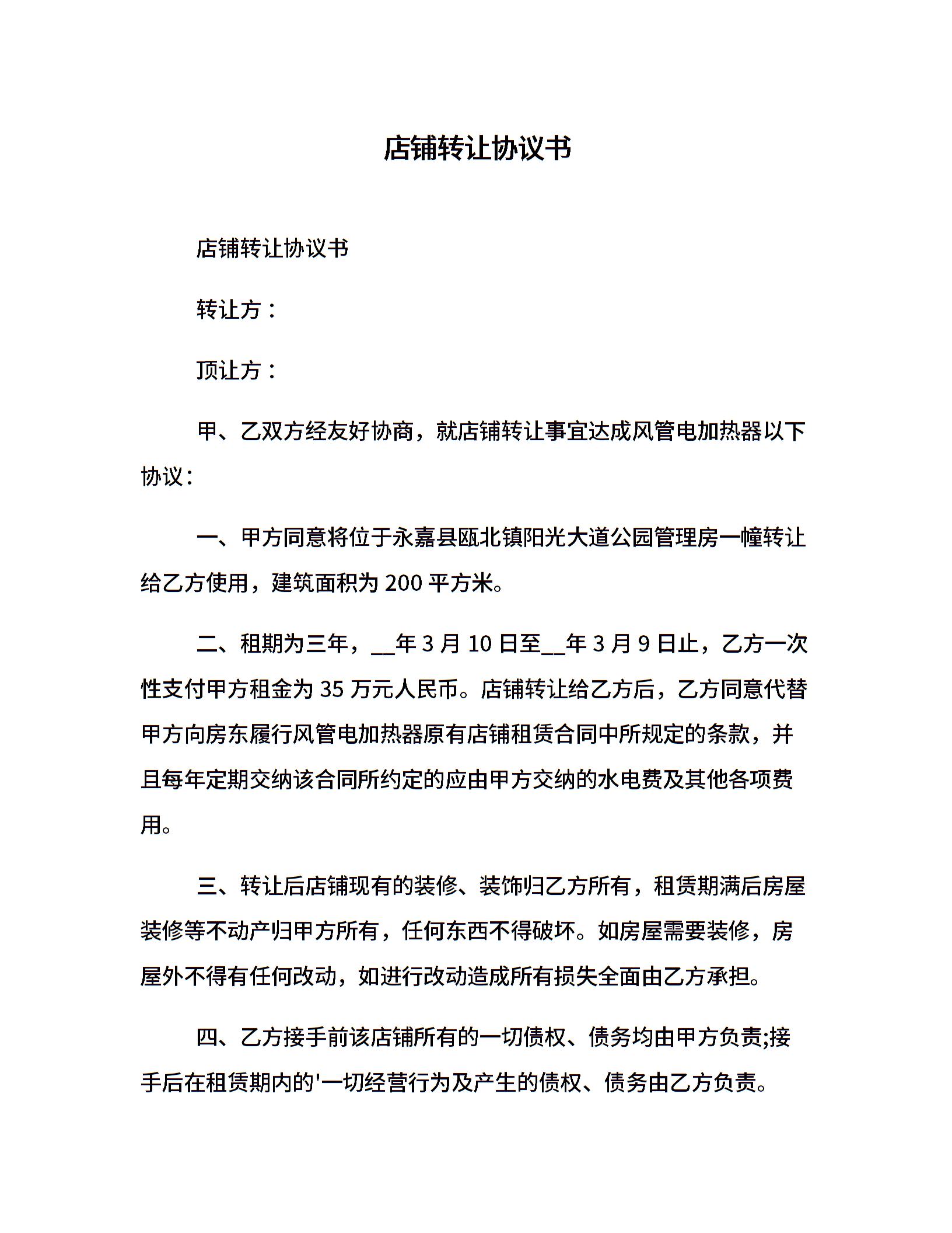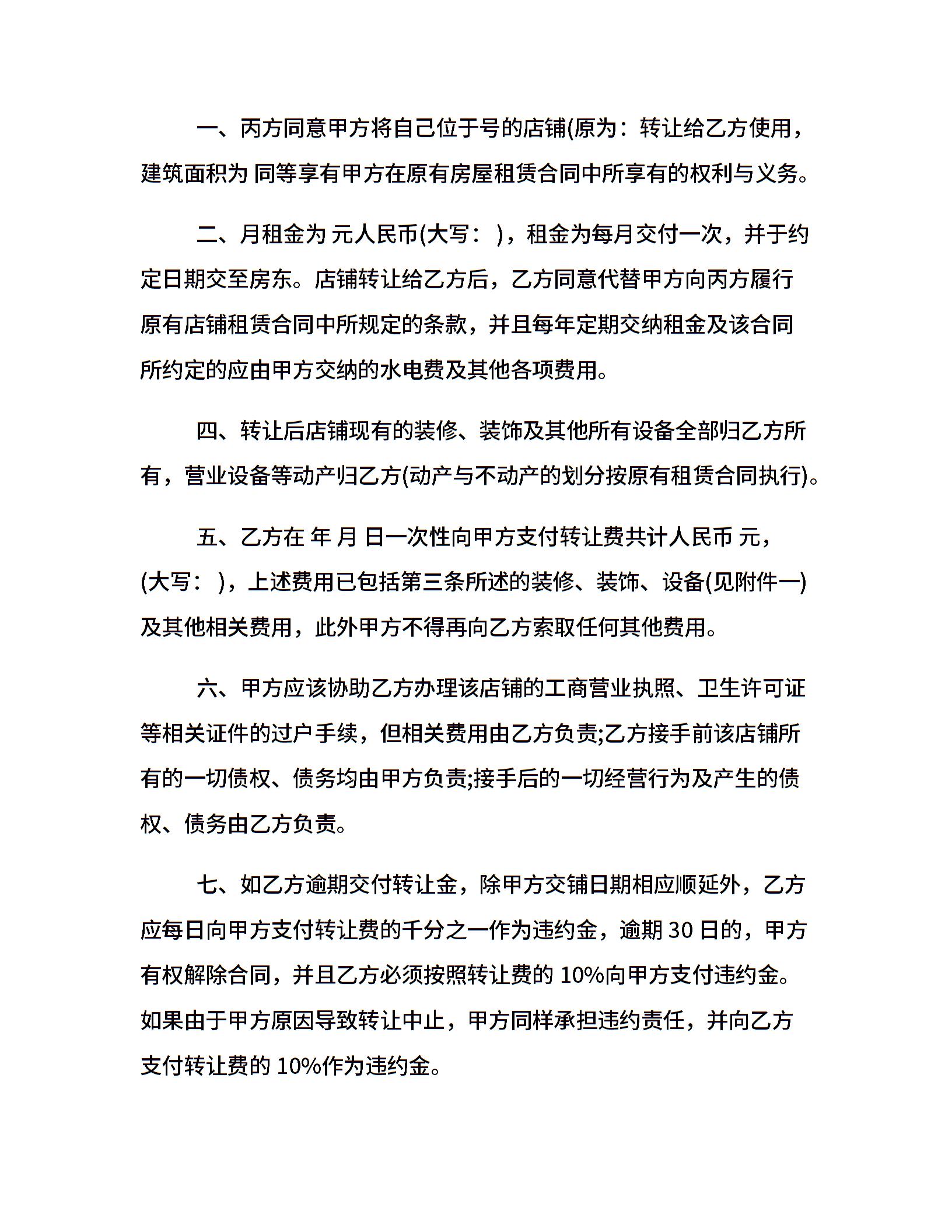店铺转让协议书