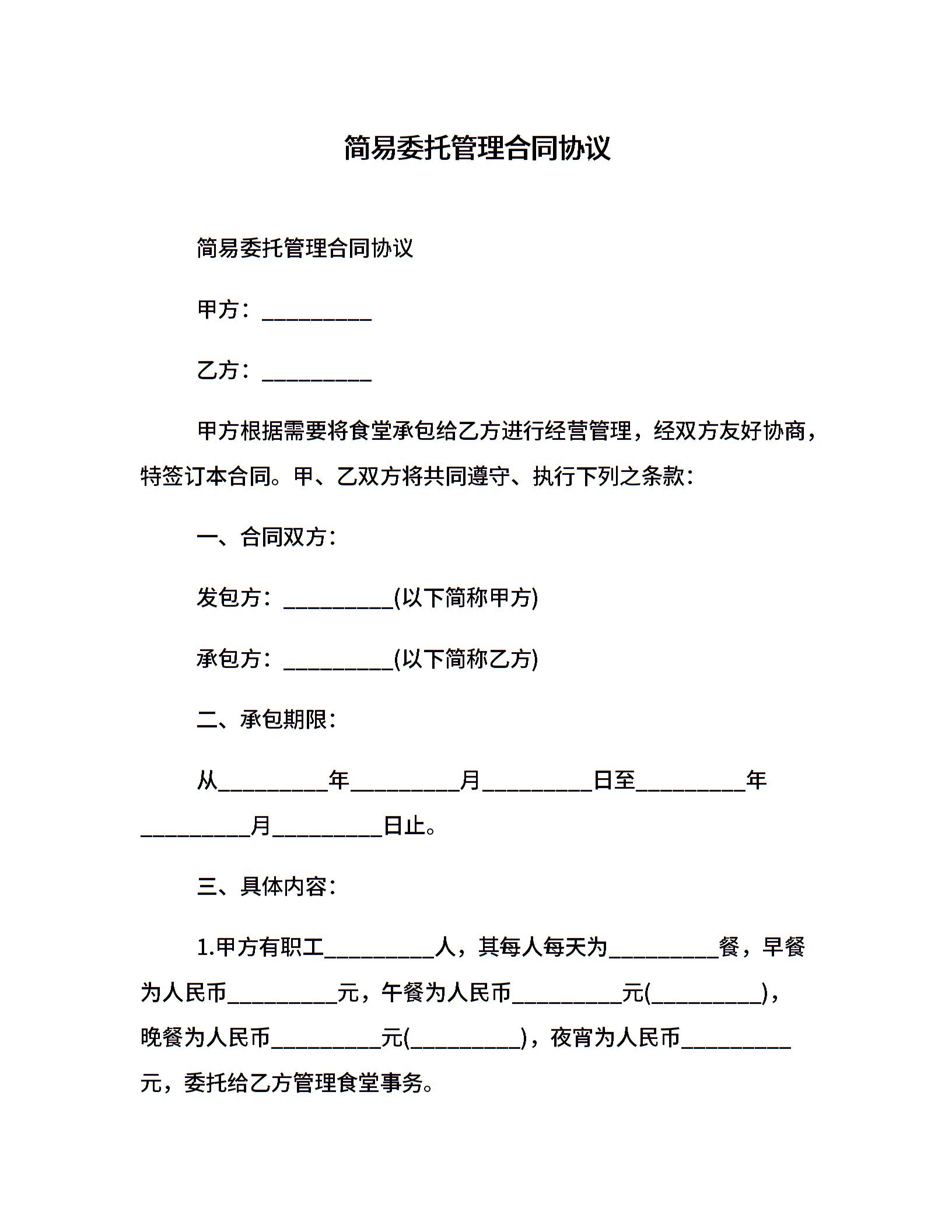 简易委托管理合同协议