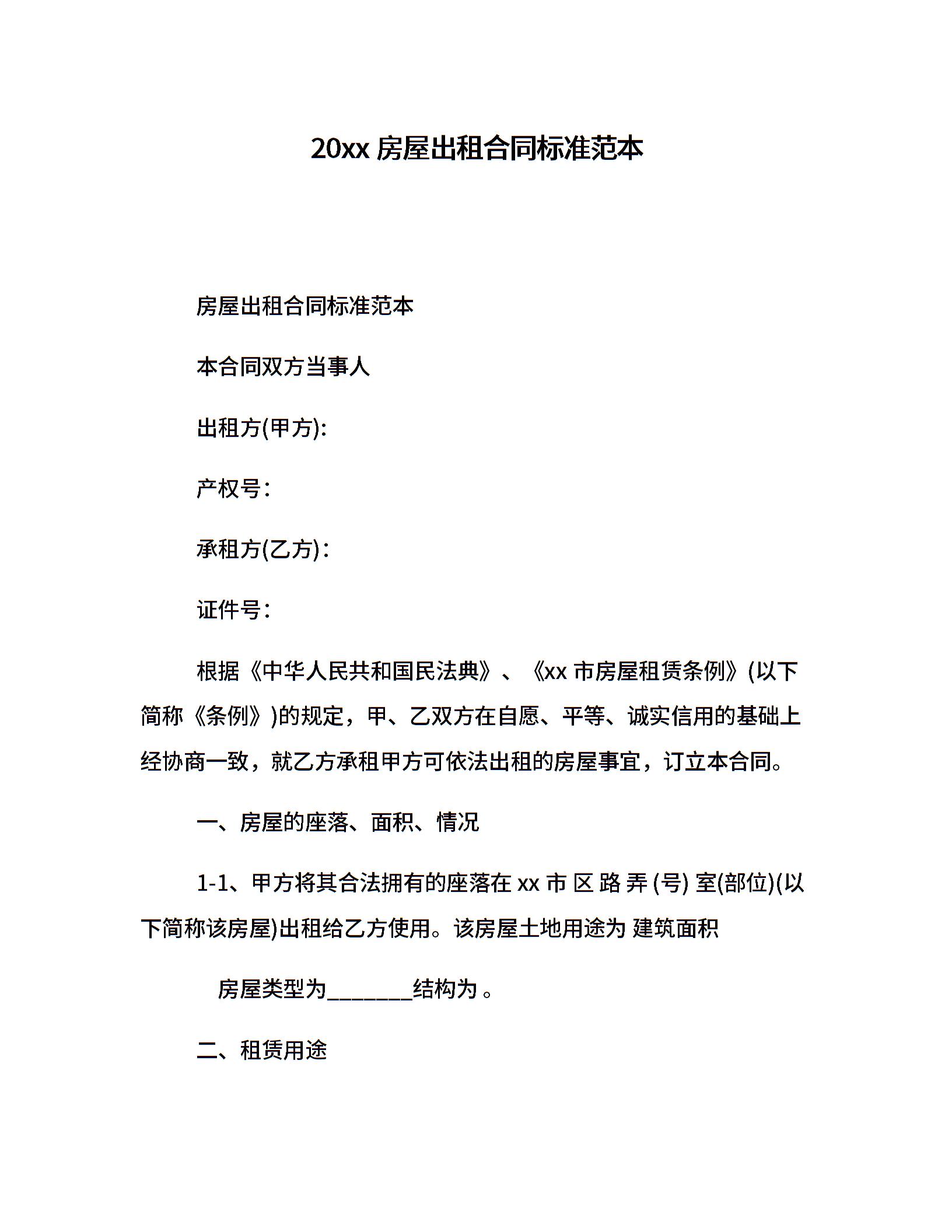 20xx房屋出租合同标准范本
