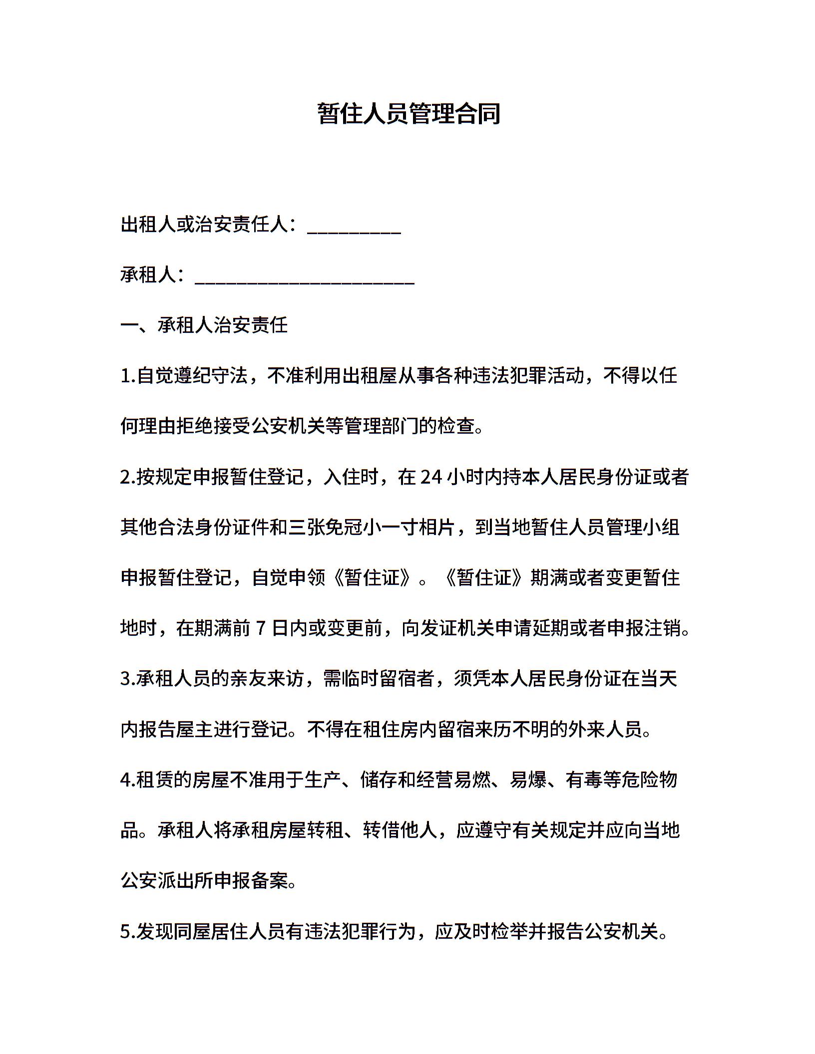 暂住人员管理合同