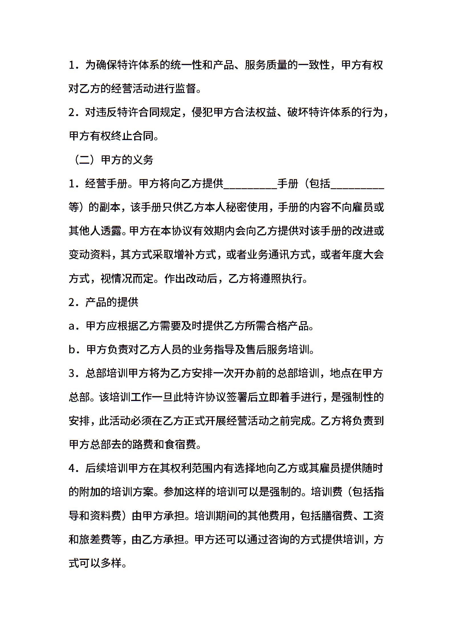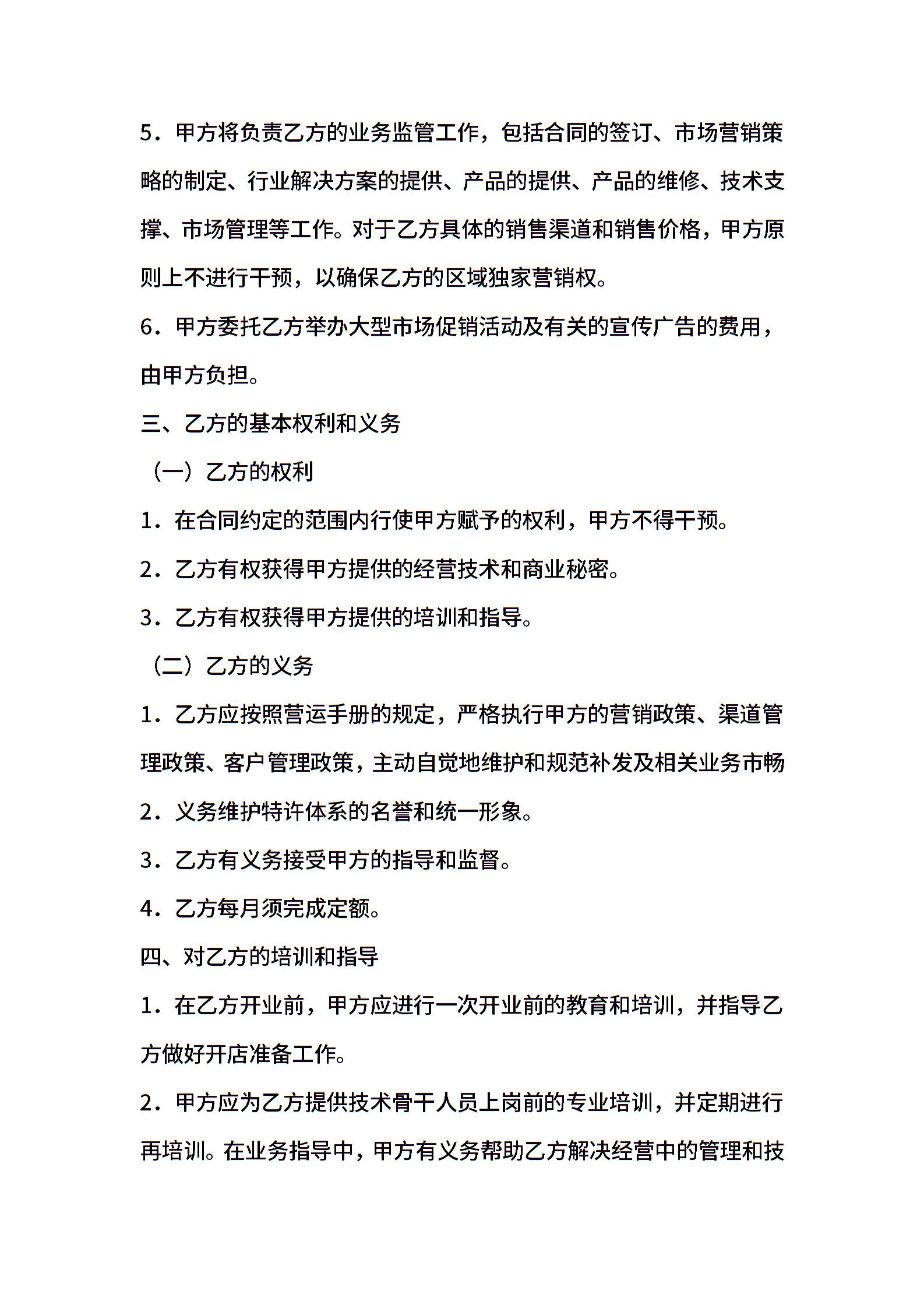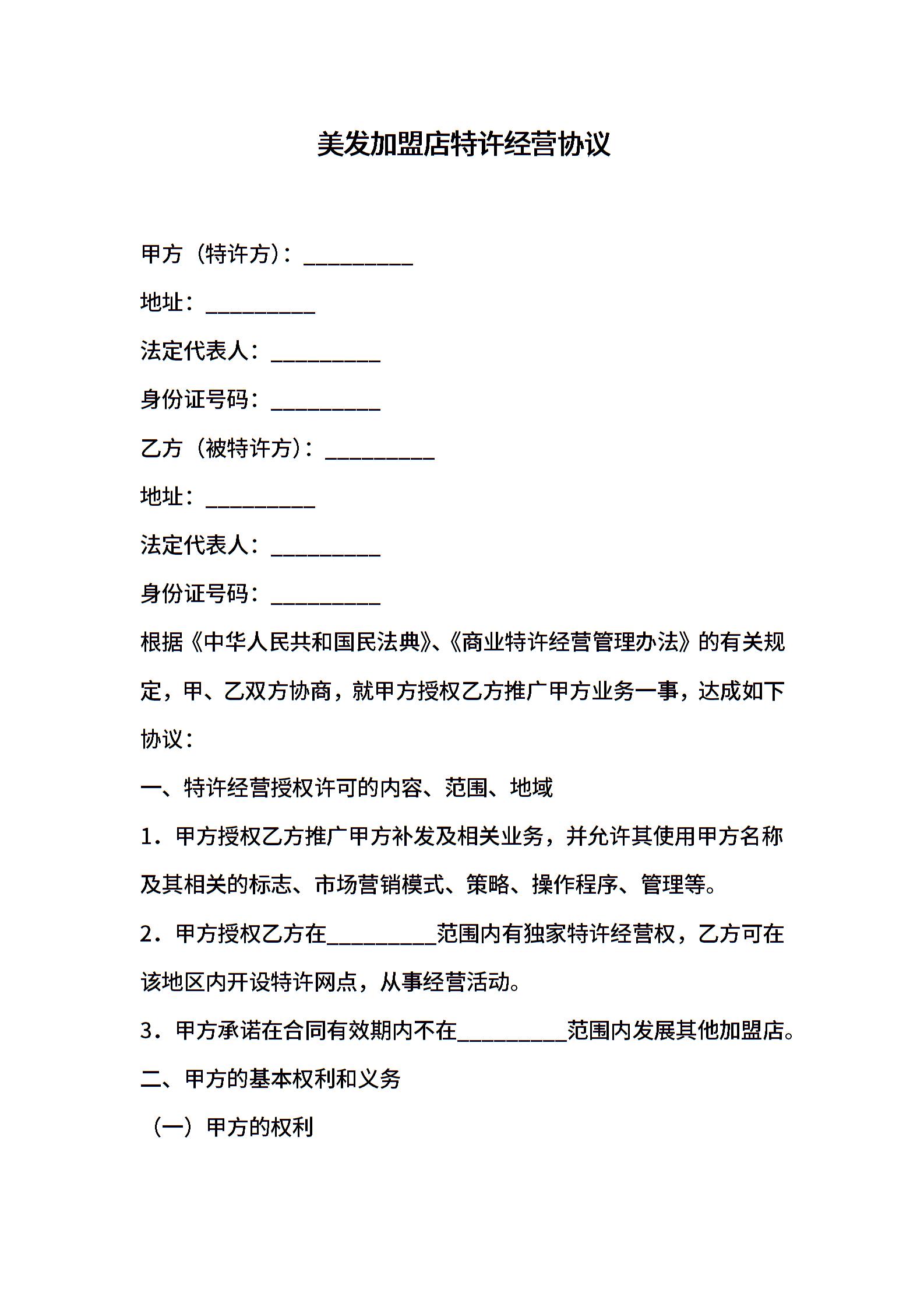 美发加盟店特许经营协议