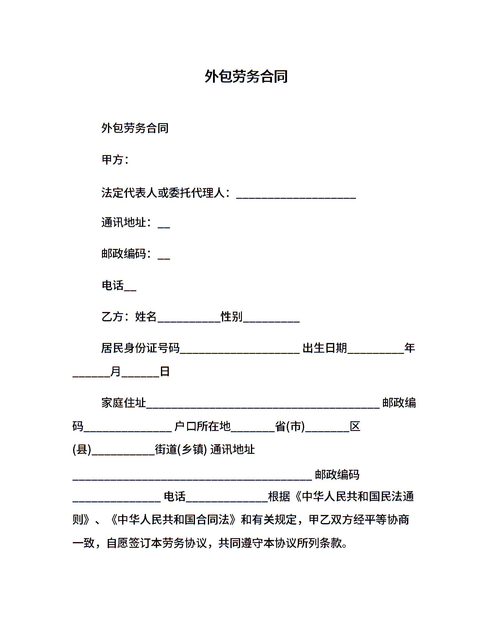 外包劳务合同