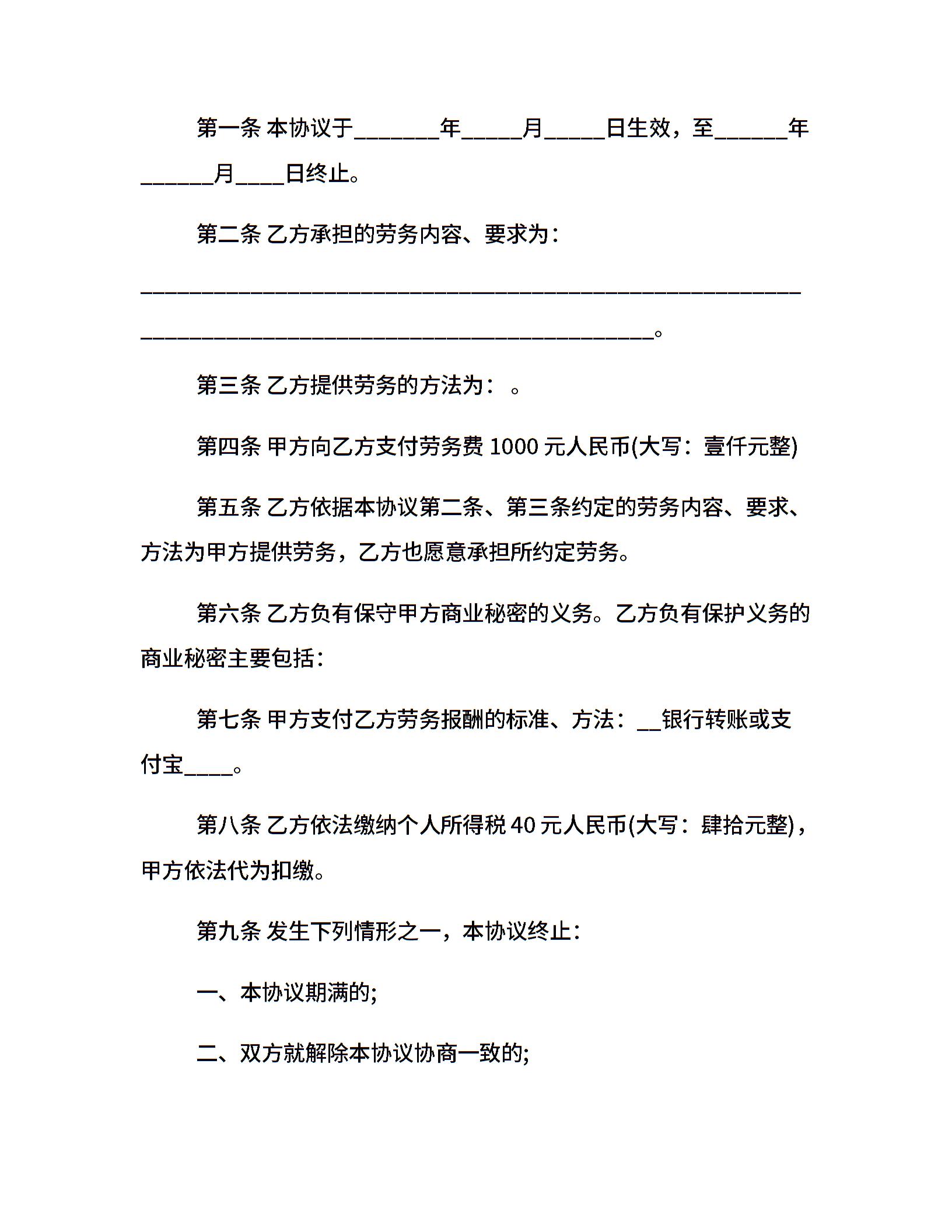 当前位置:量子办公 > 合同模板 > 劳务合同 >
