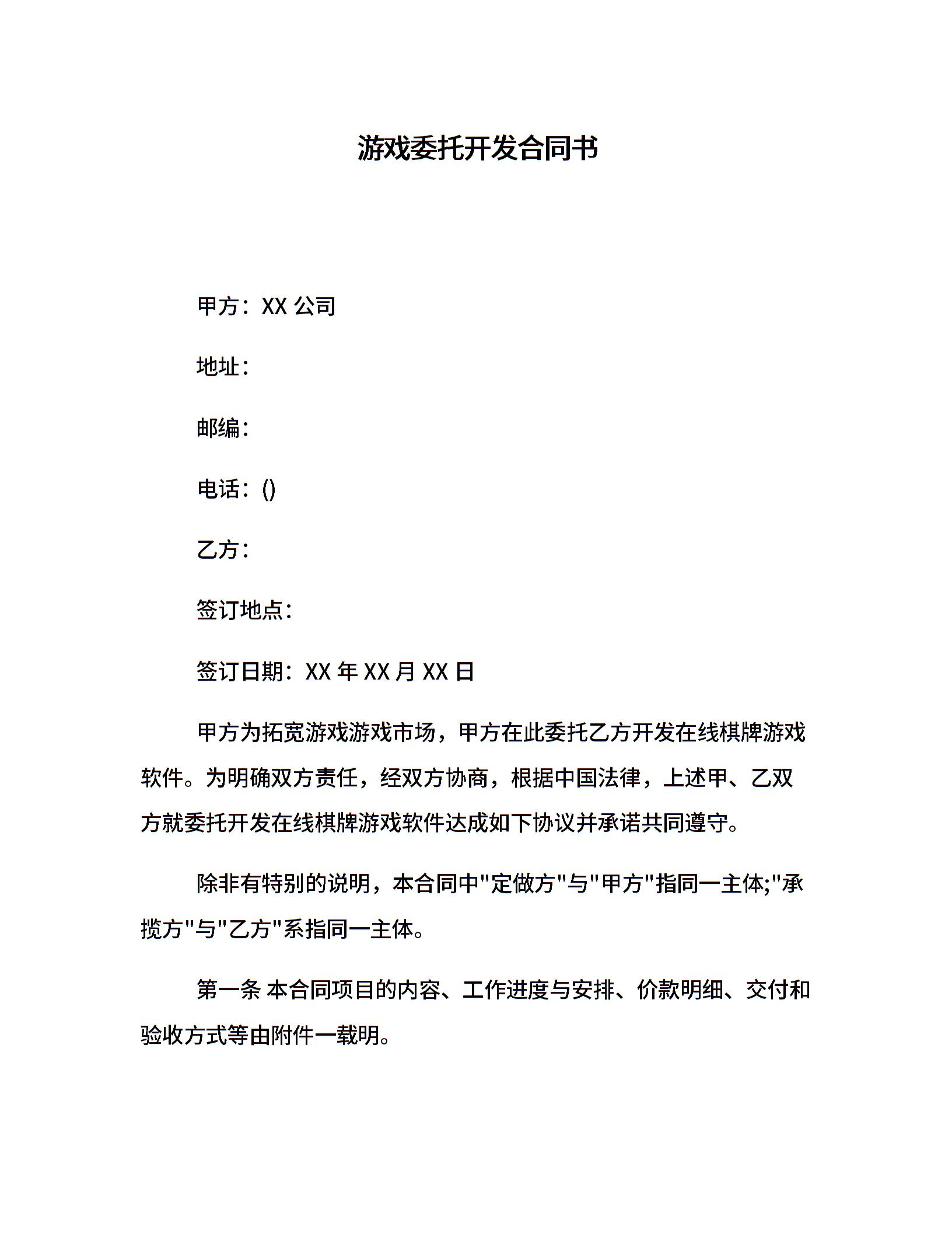 游戏委托开发合同书