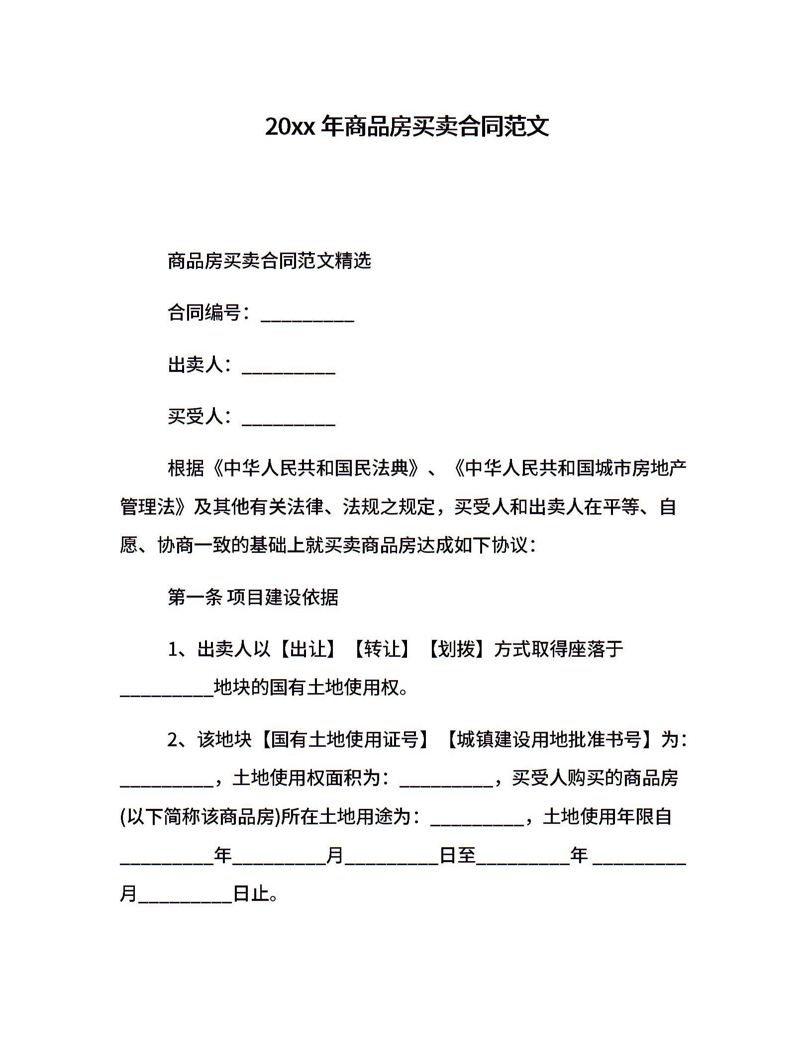 20xx年商品房买卖合同范文