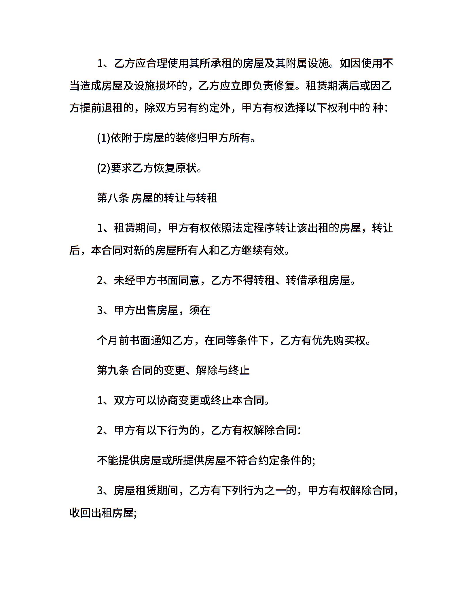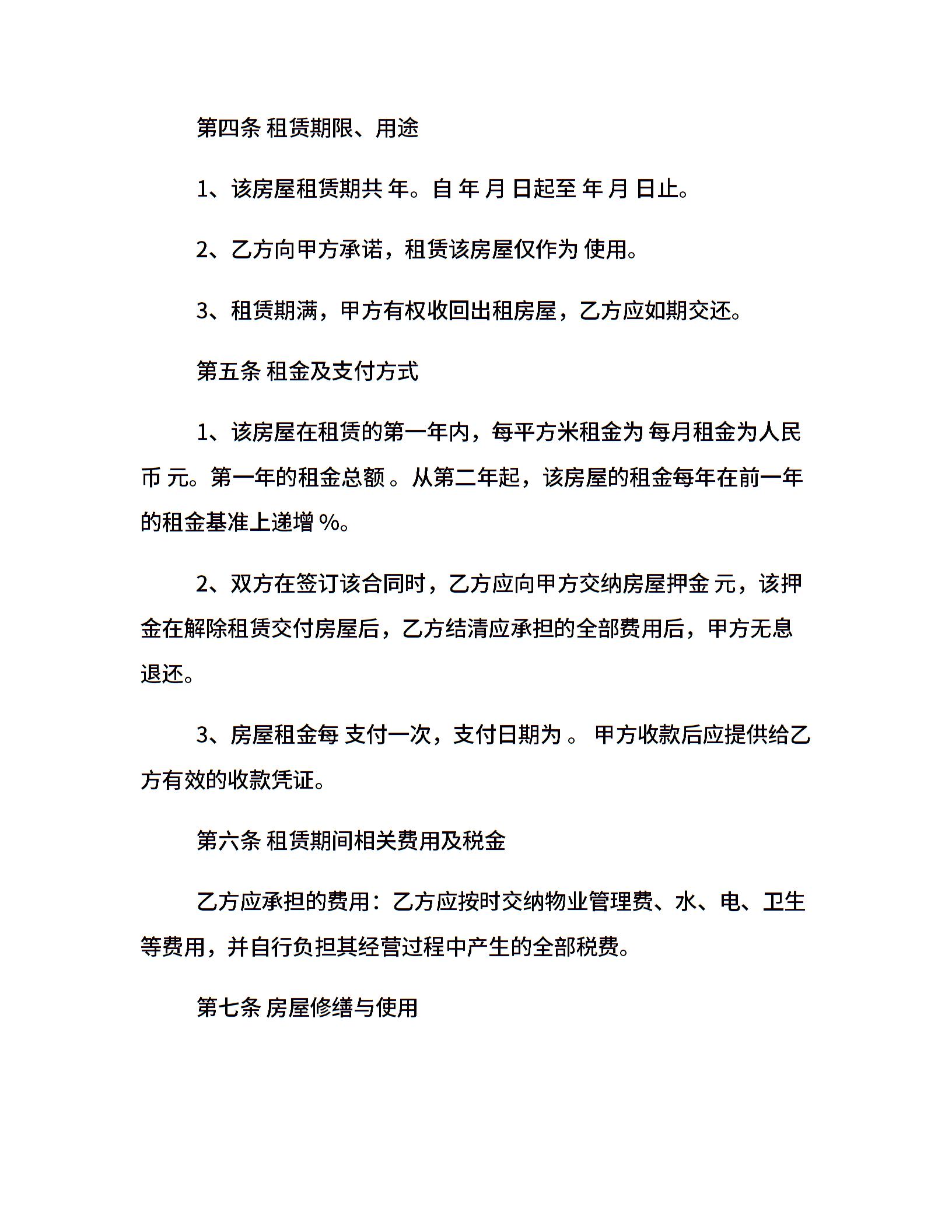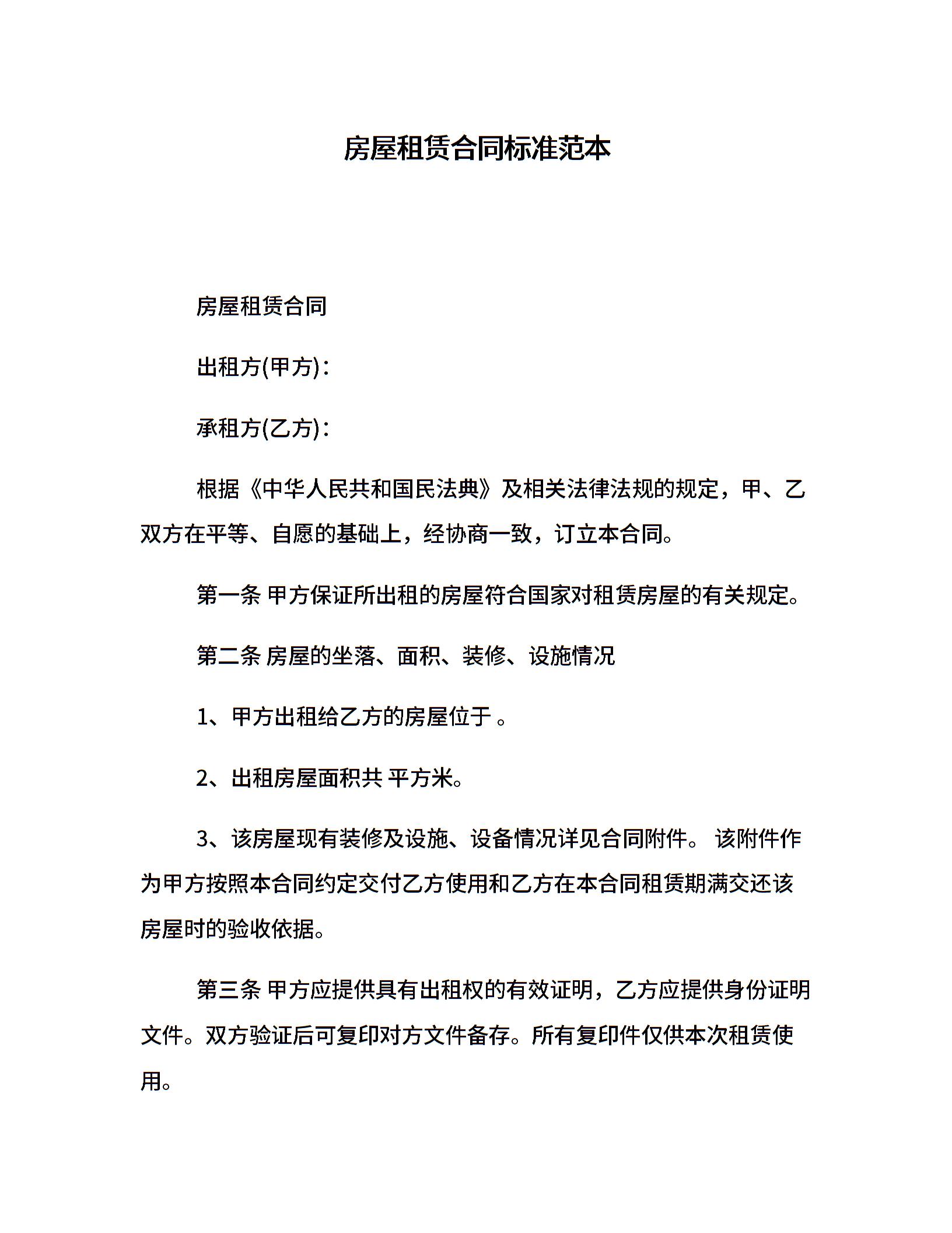 房屋租赁合同标准范本