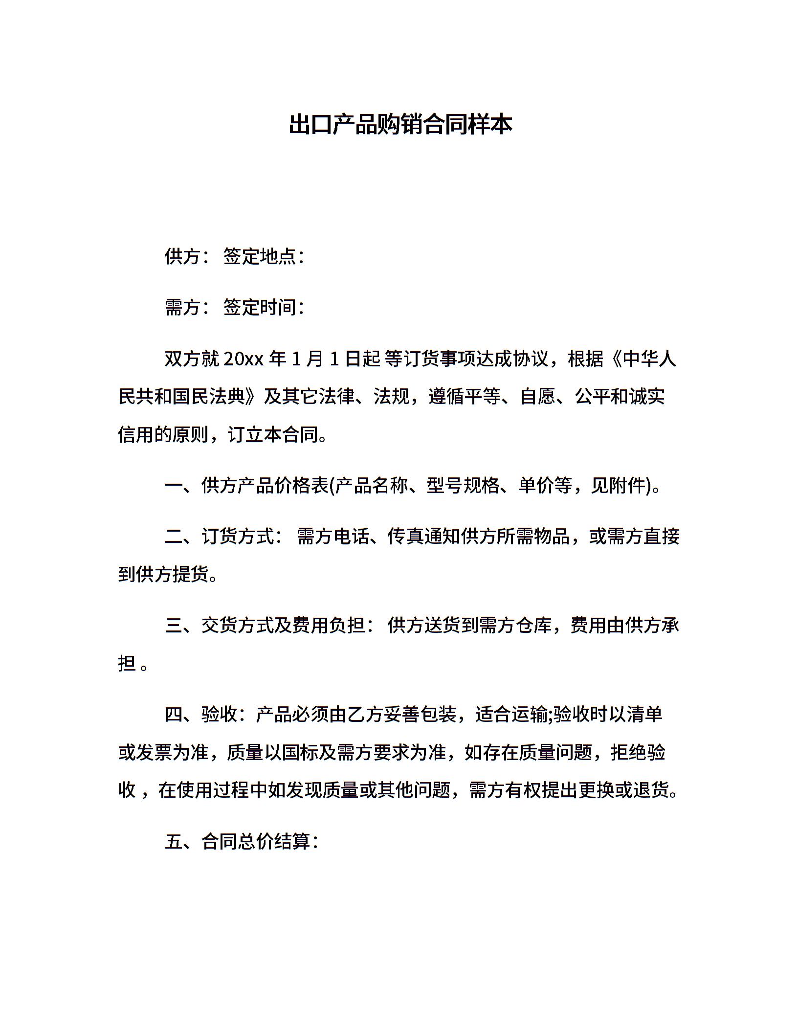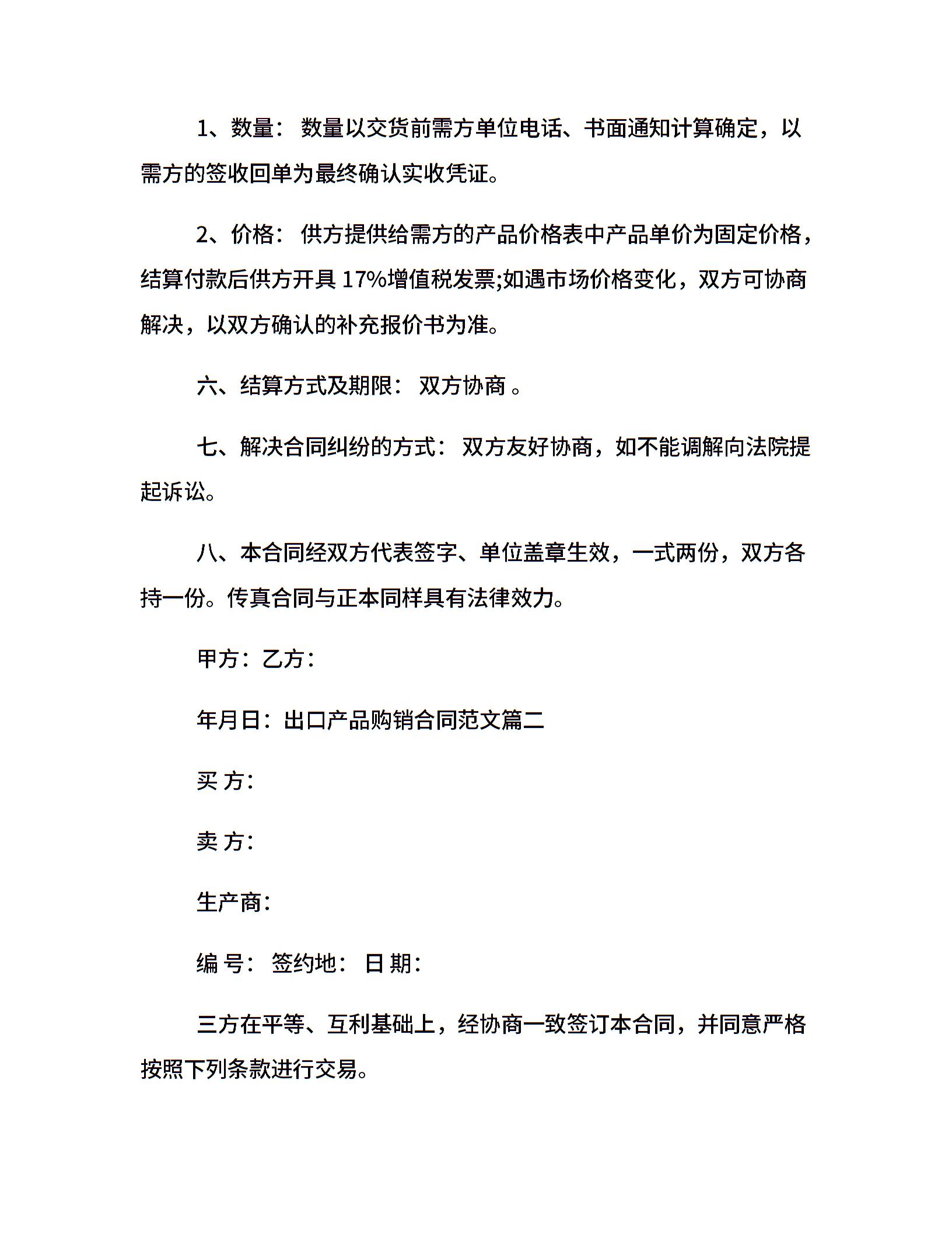 出口产品购销合同样本