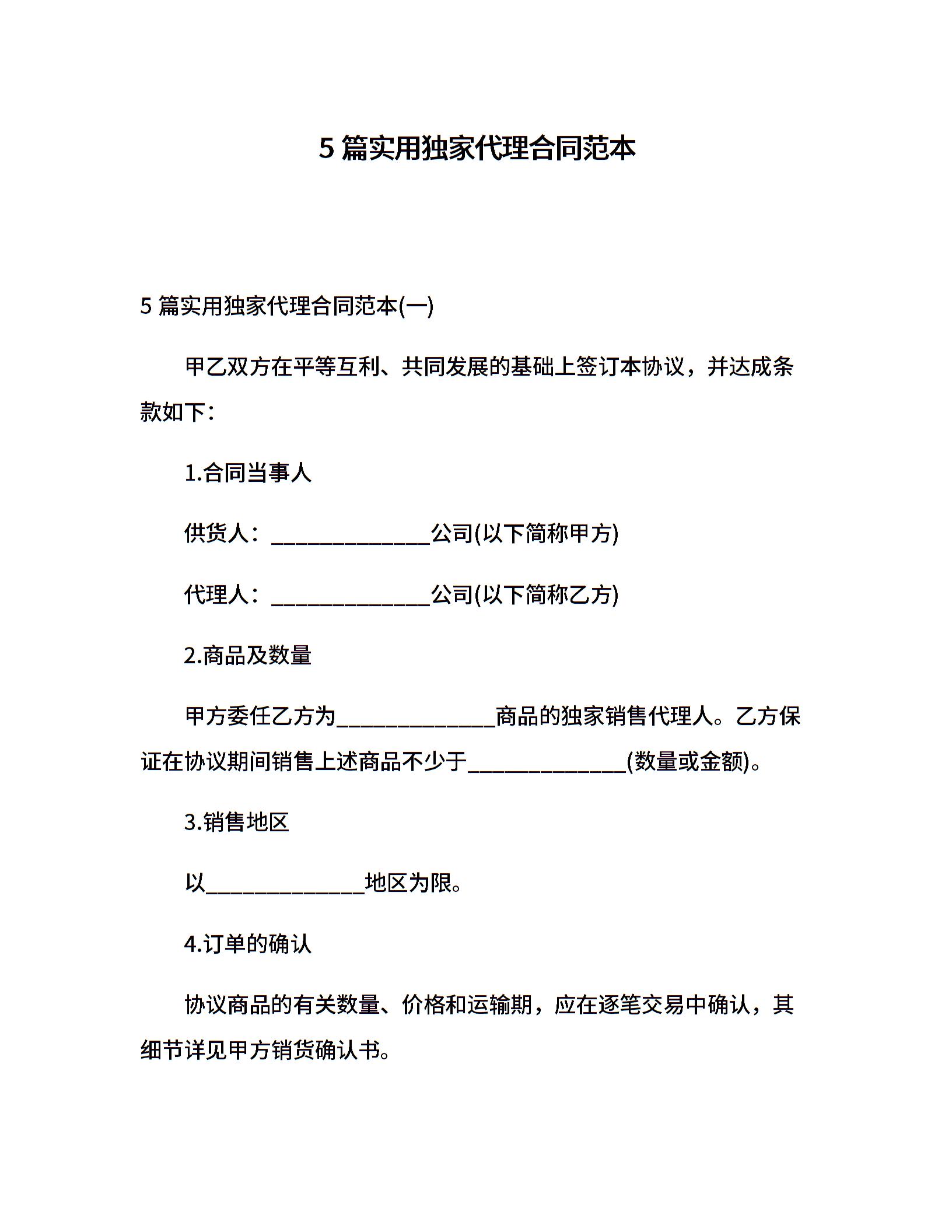5篇实用独家代理合同范本