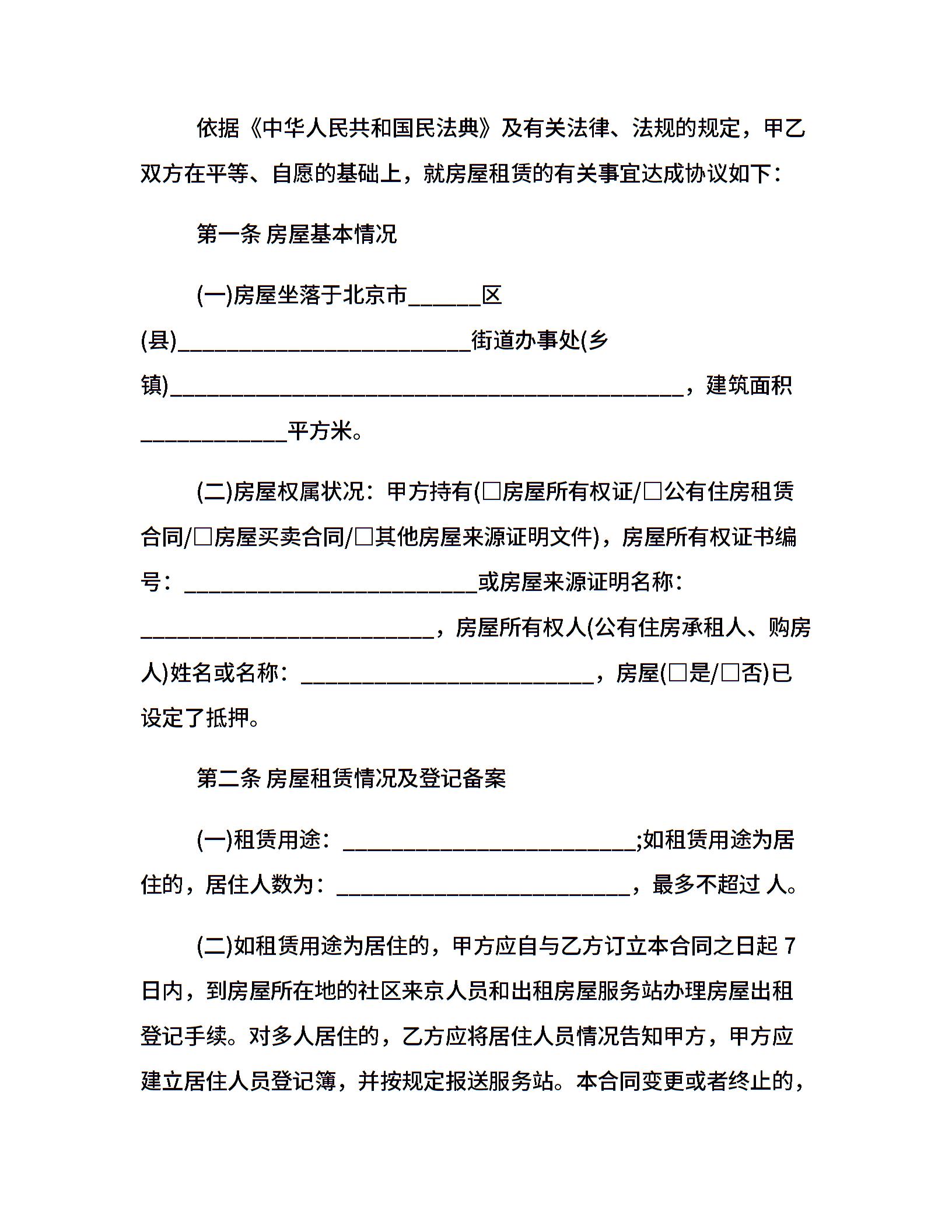 北京出租房合同