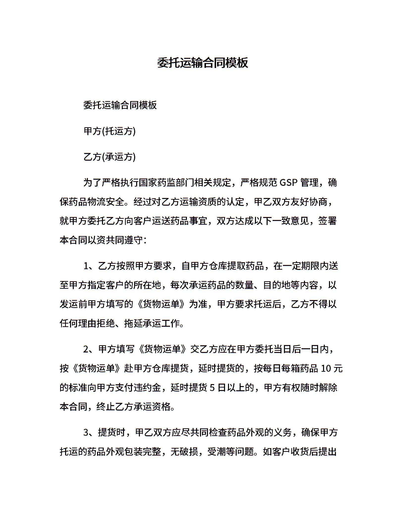 委托运输合同模板