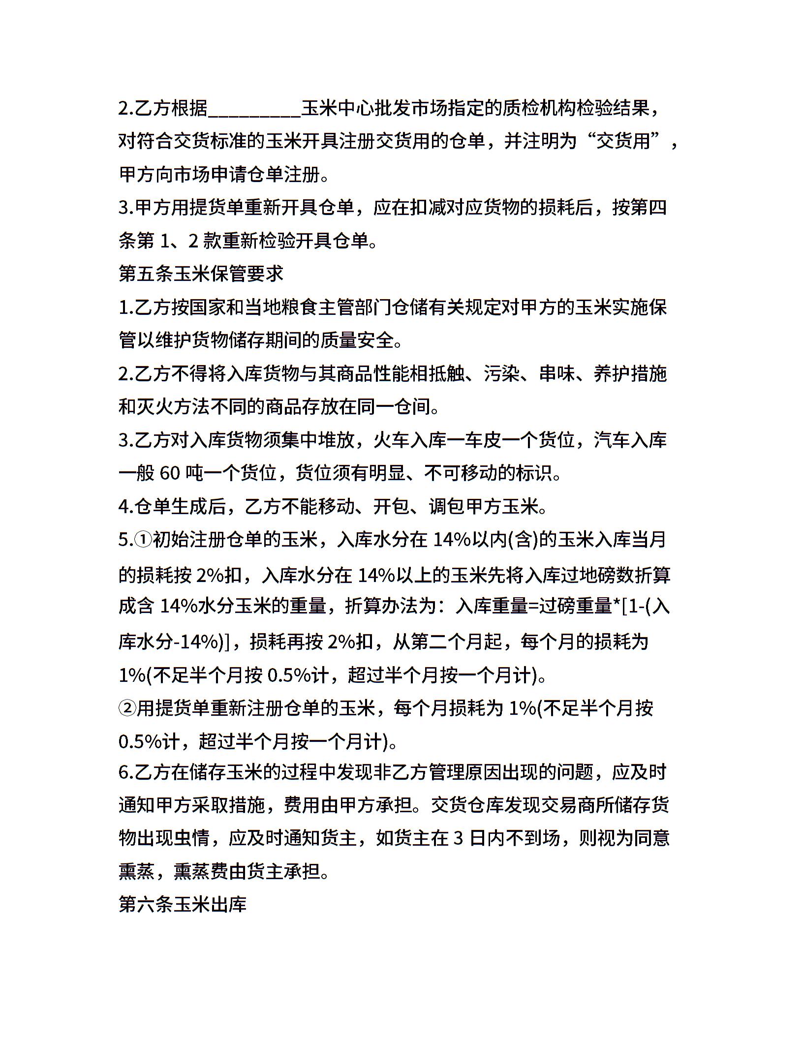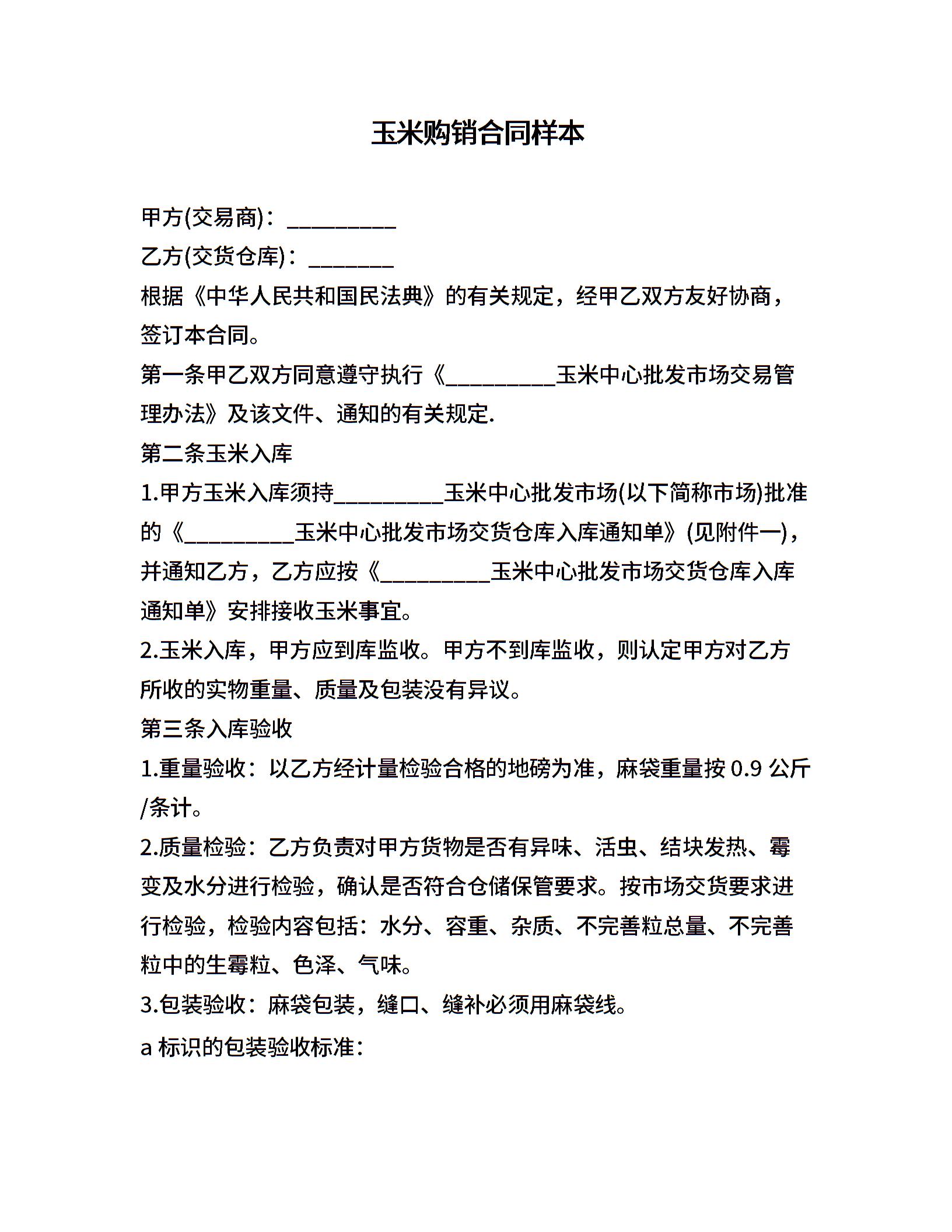 玉米购销合同样本