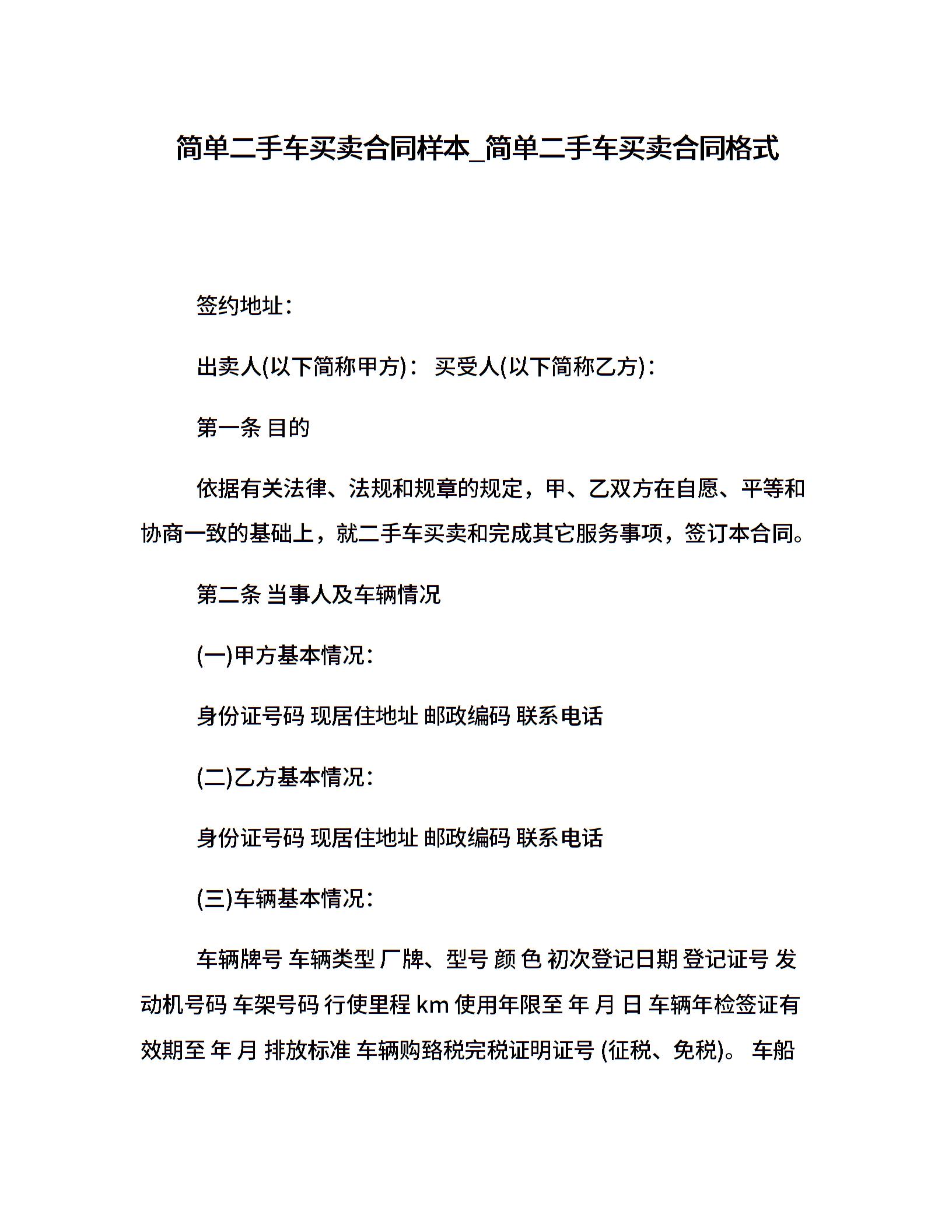 简单二手车买卖合同样本_简单二手车买卖合同格式