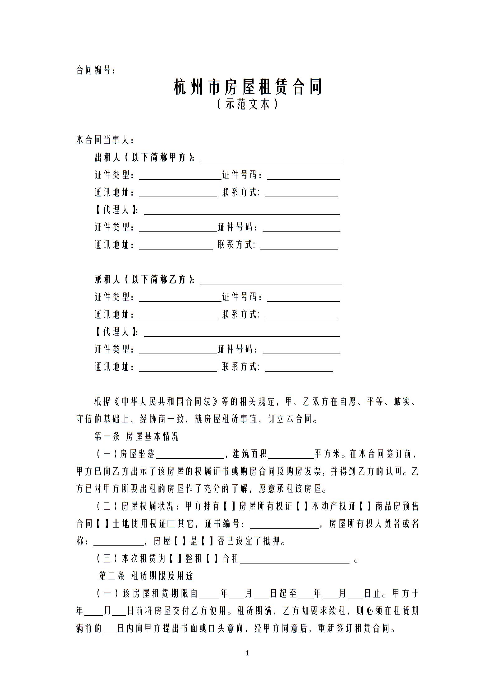 杭州市房屋租赁合同