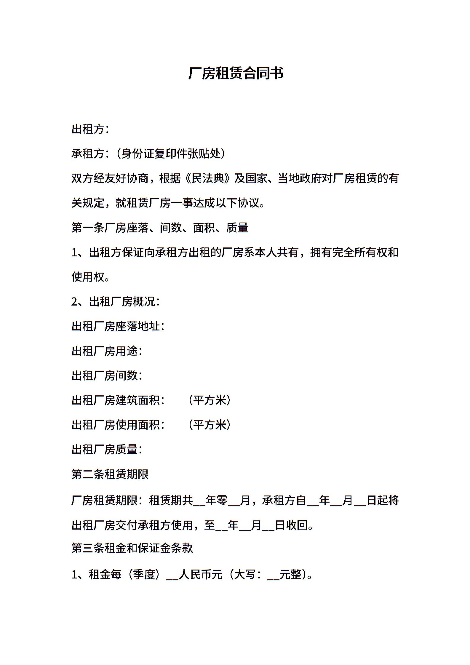 厂房租赁合同书 (2)
