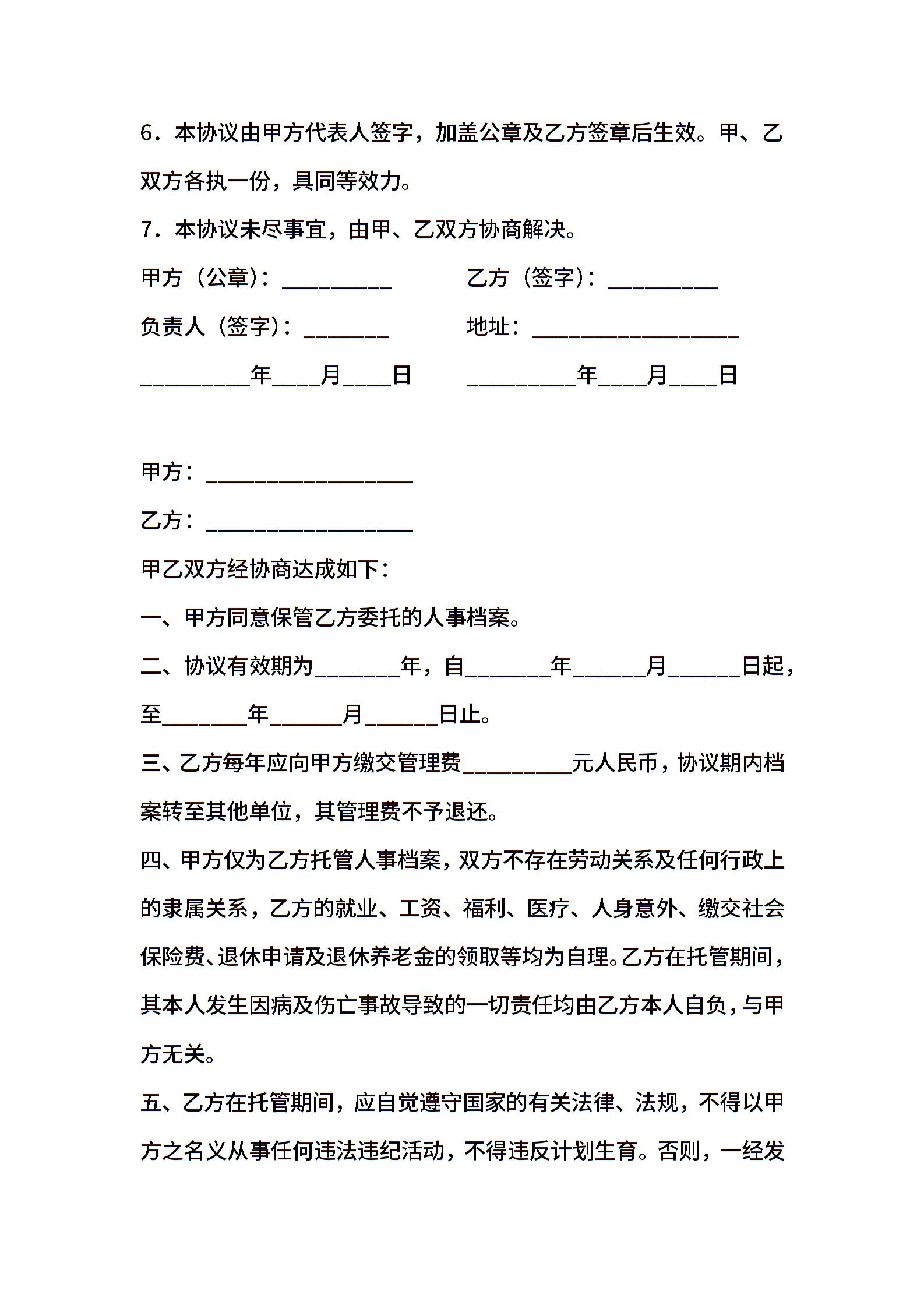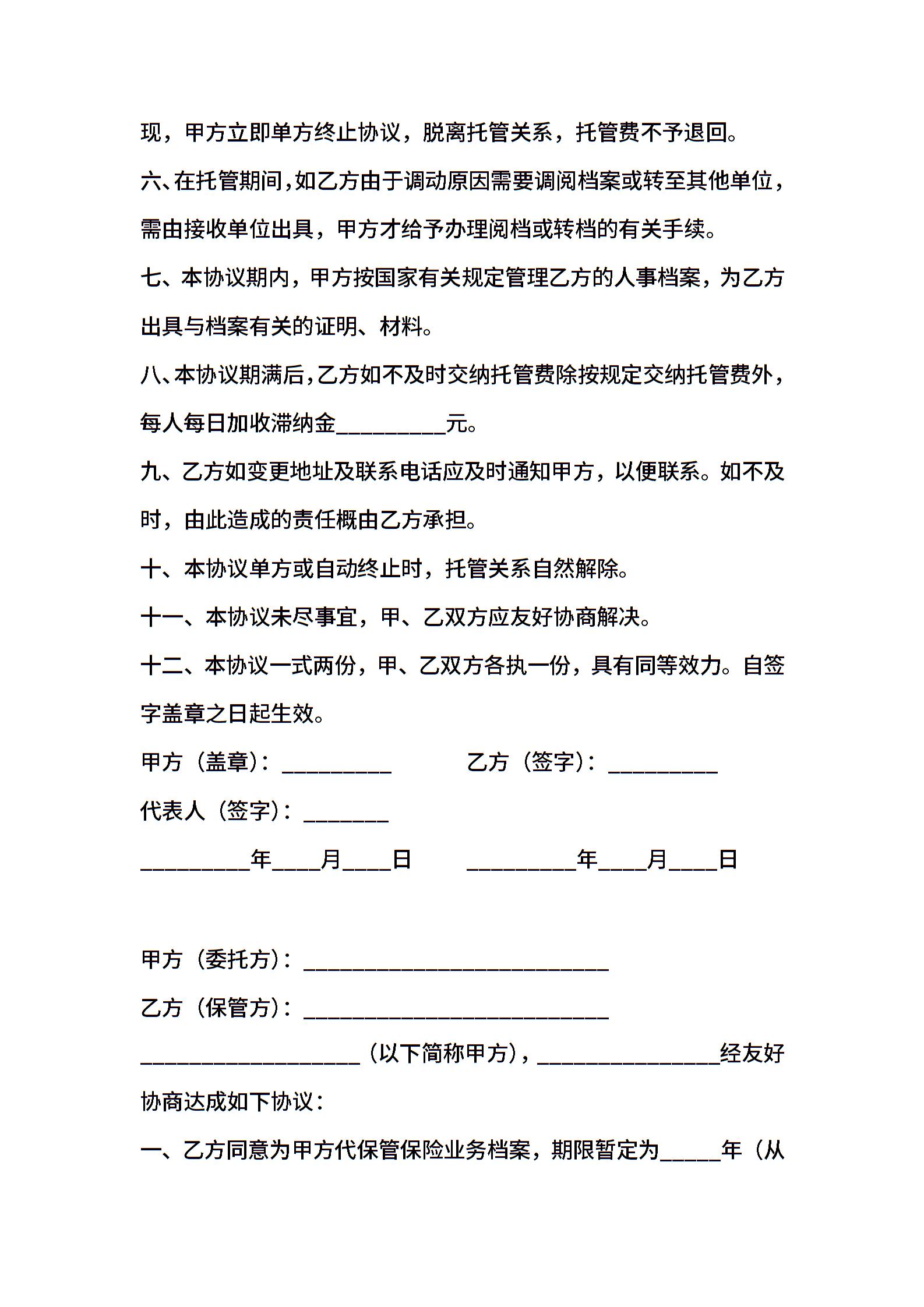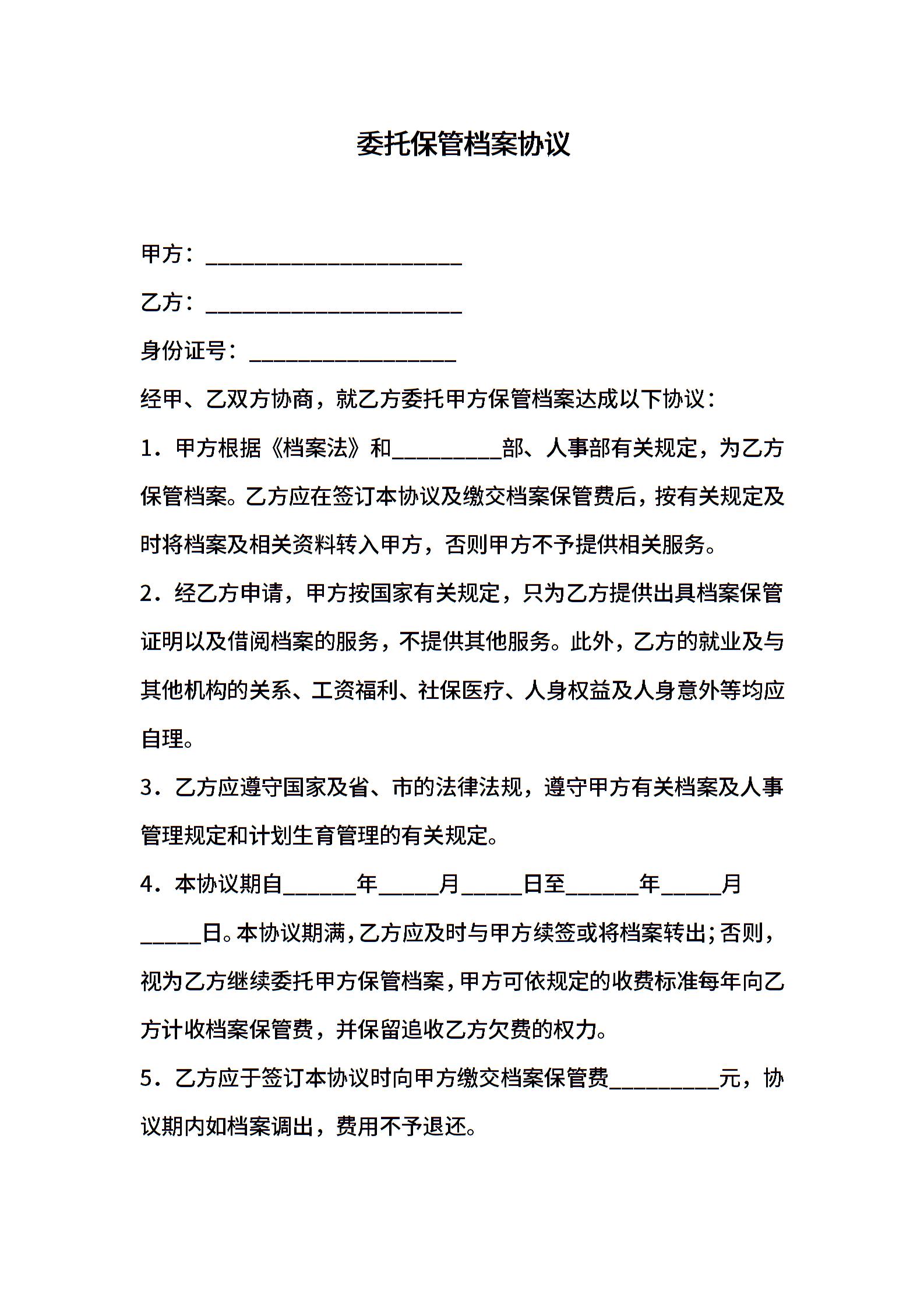委托保管档案协议
