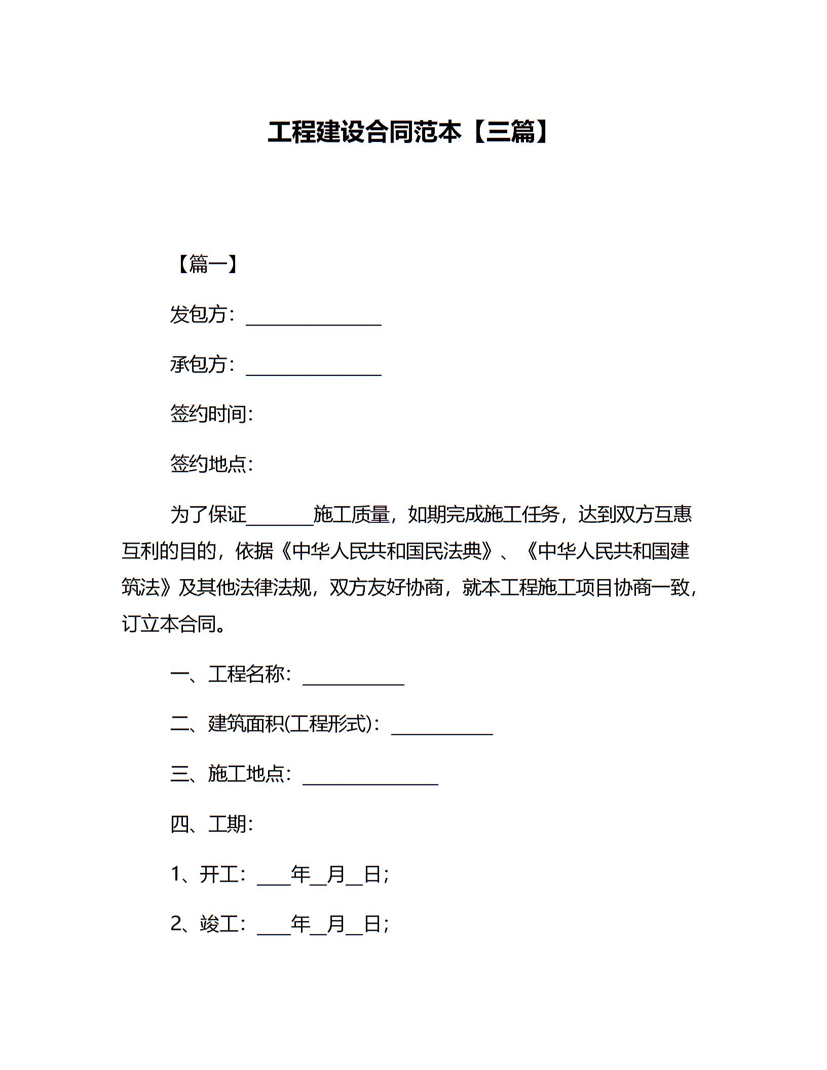 工程建设合同范本【三篇】