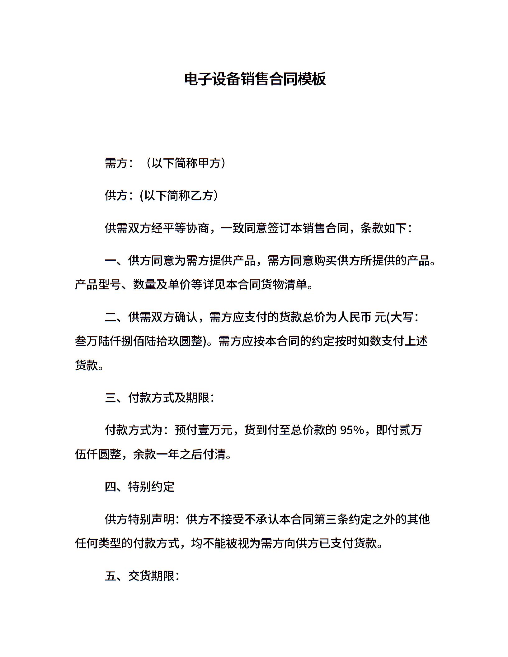电子设备销售合同模板