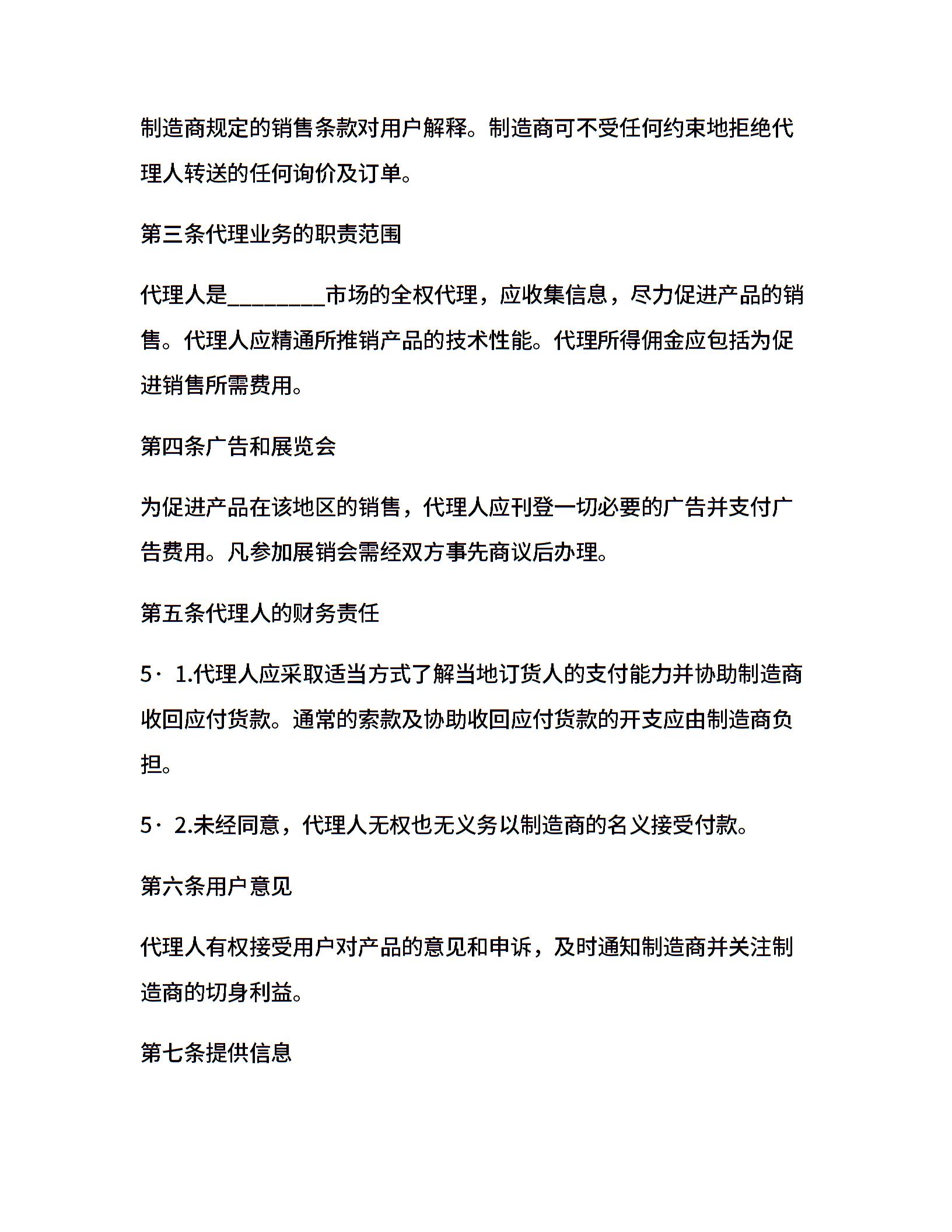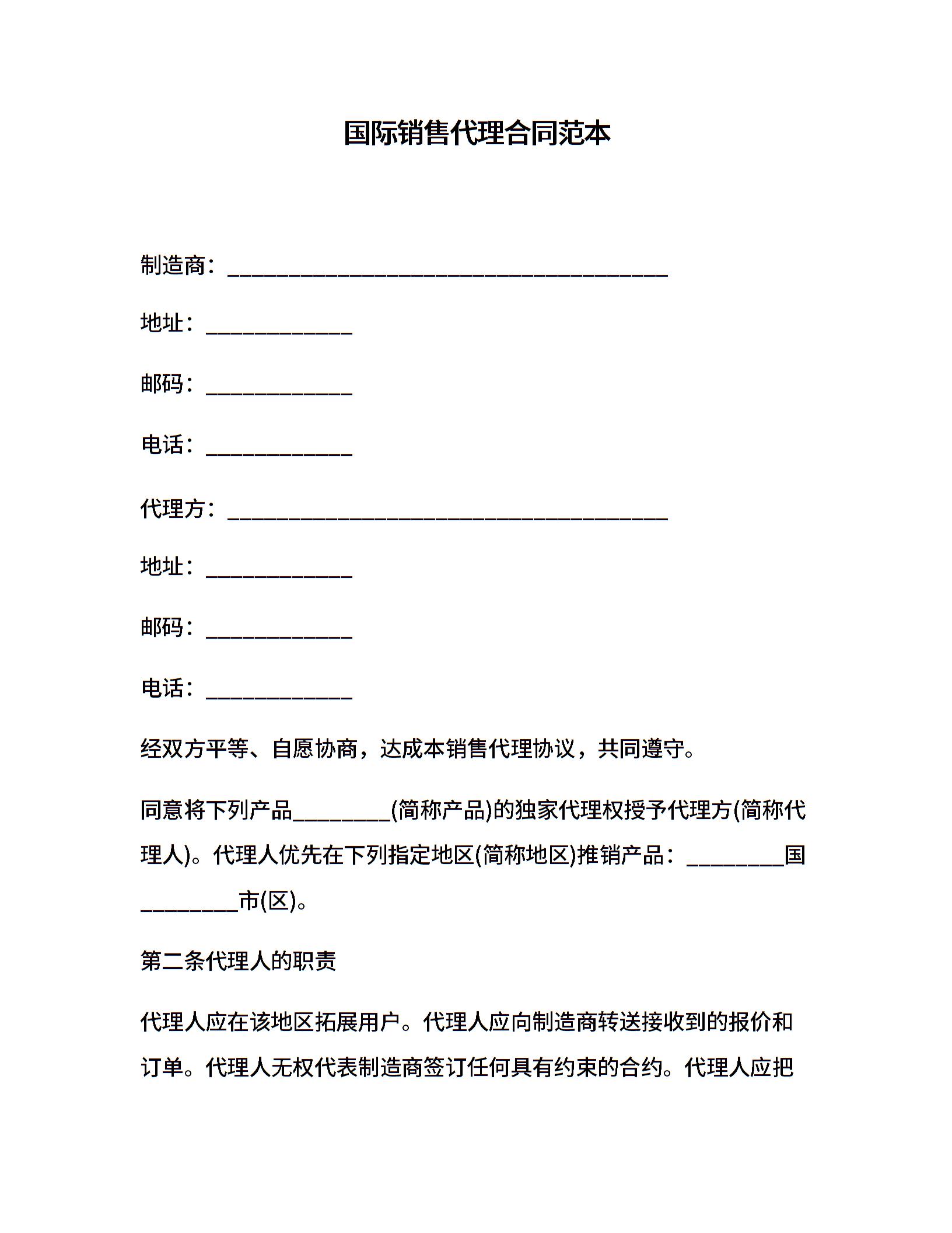 国际销售代理合同范本