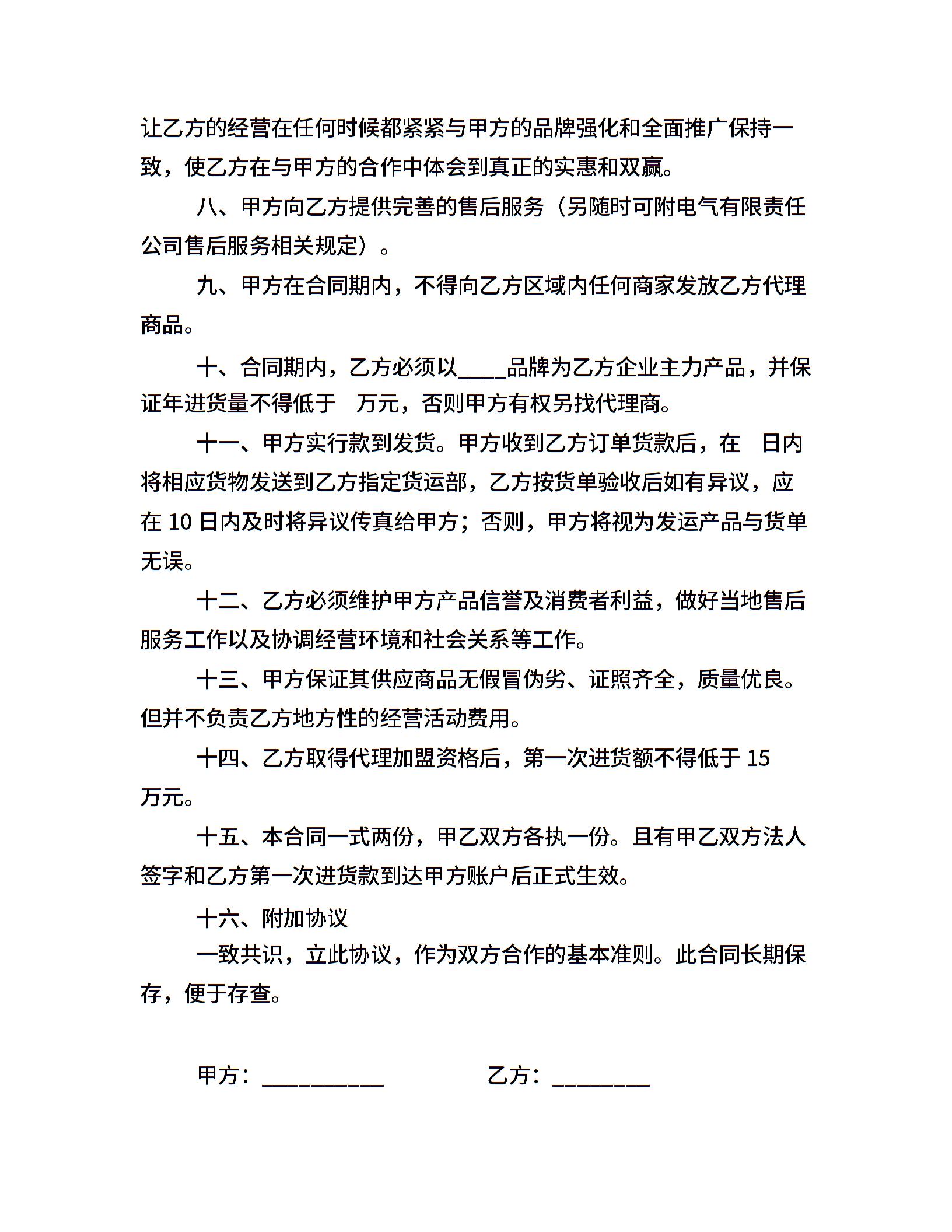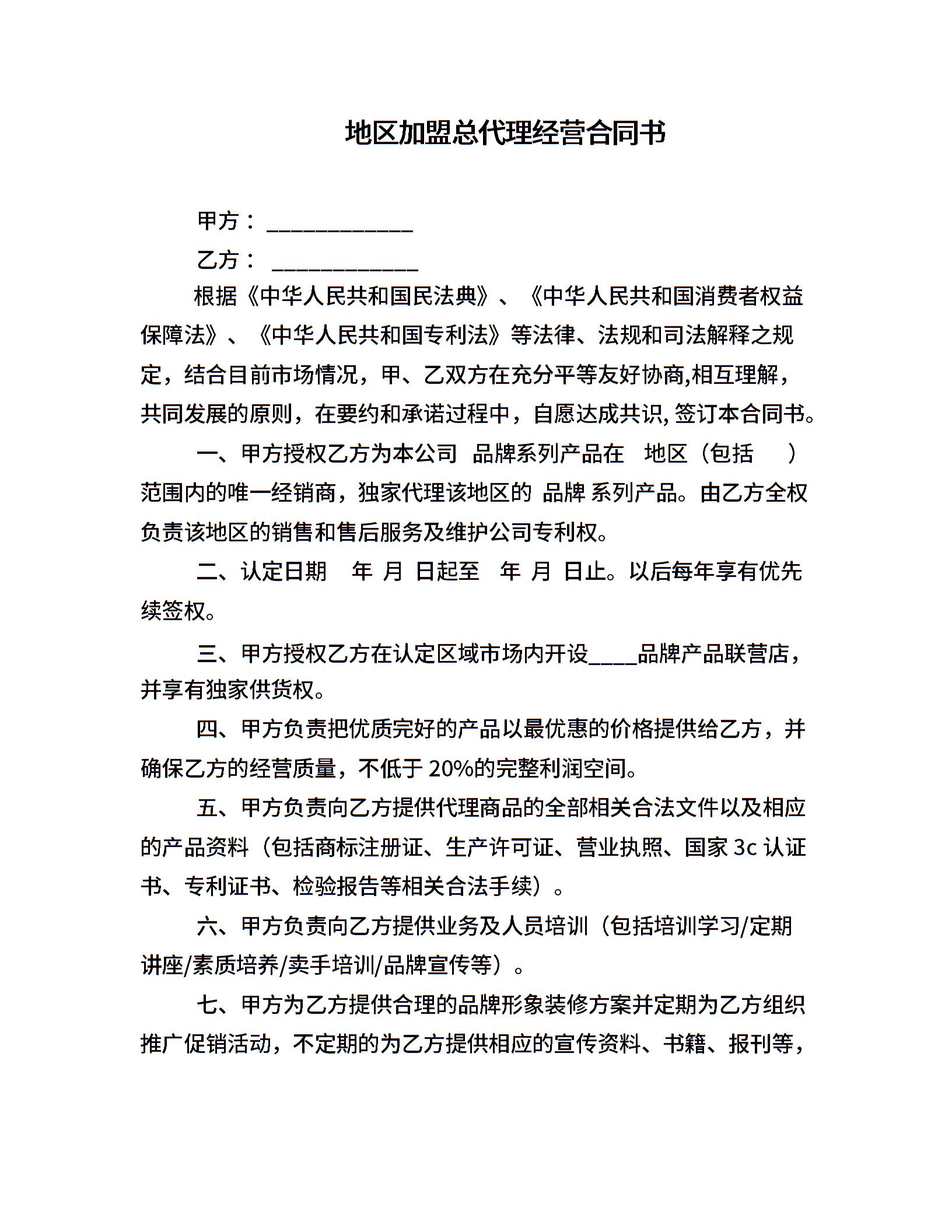 地区加盟总代理经营合同书