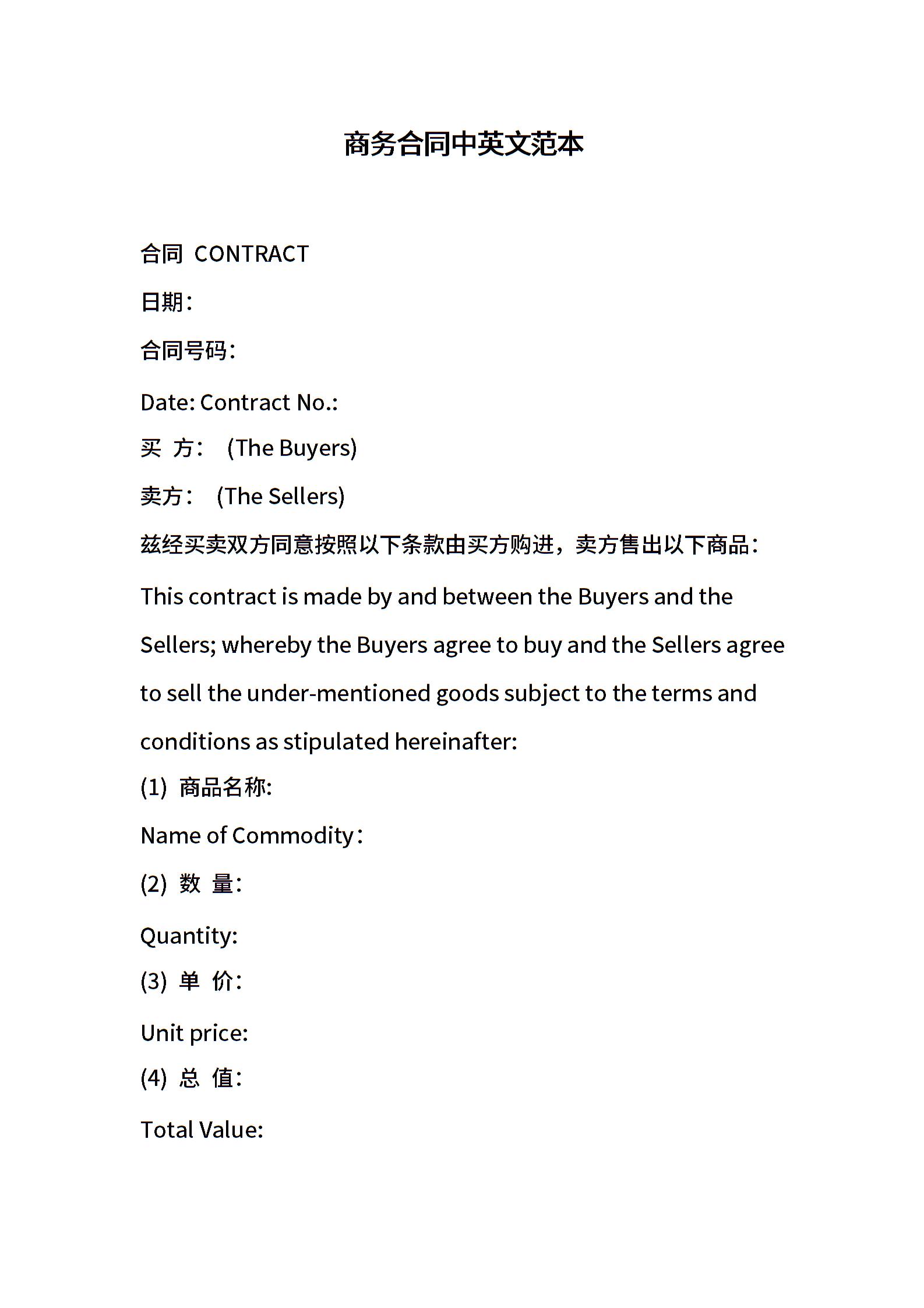 商务合同中英文范本