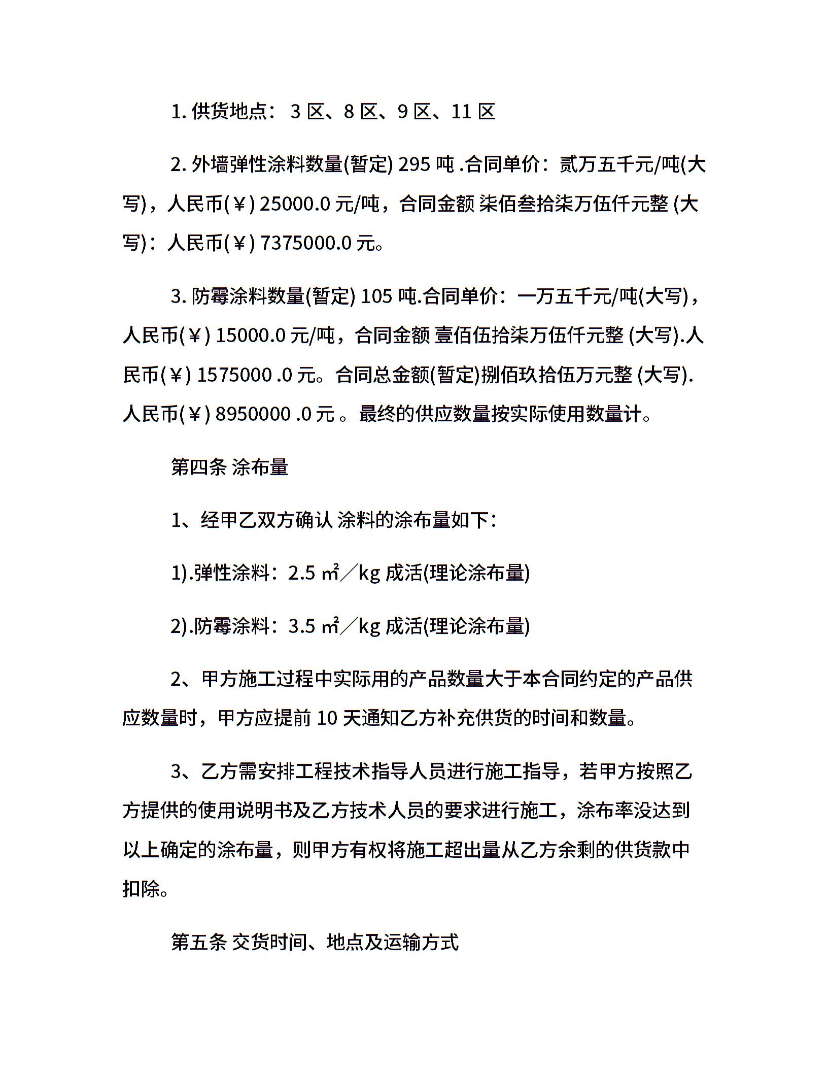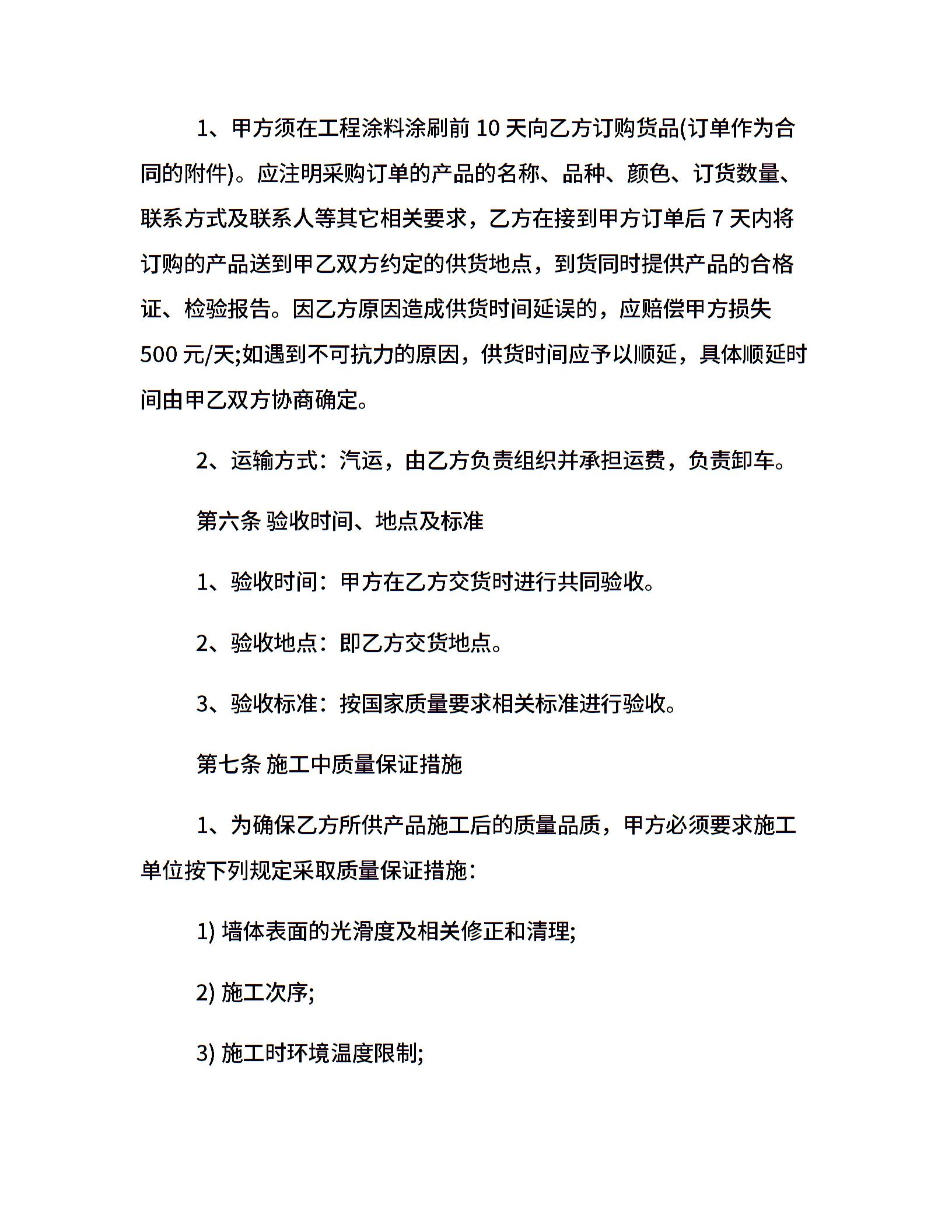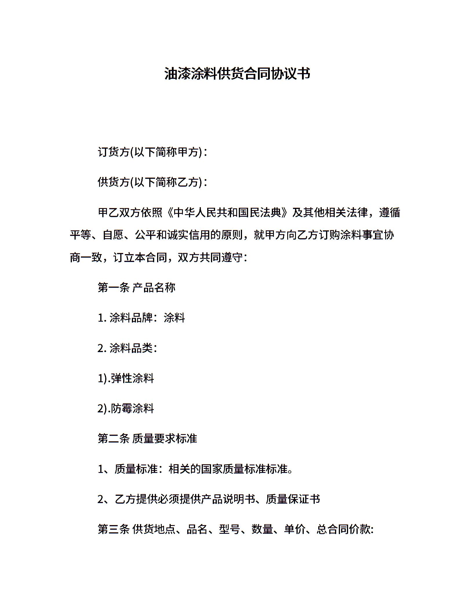 油漆涂料供货合同协议书