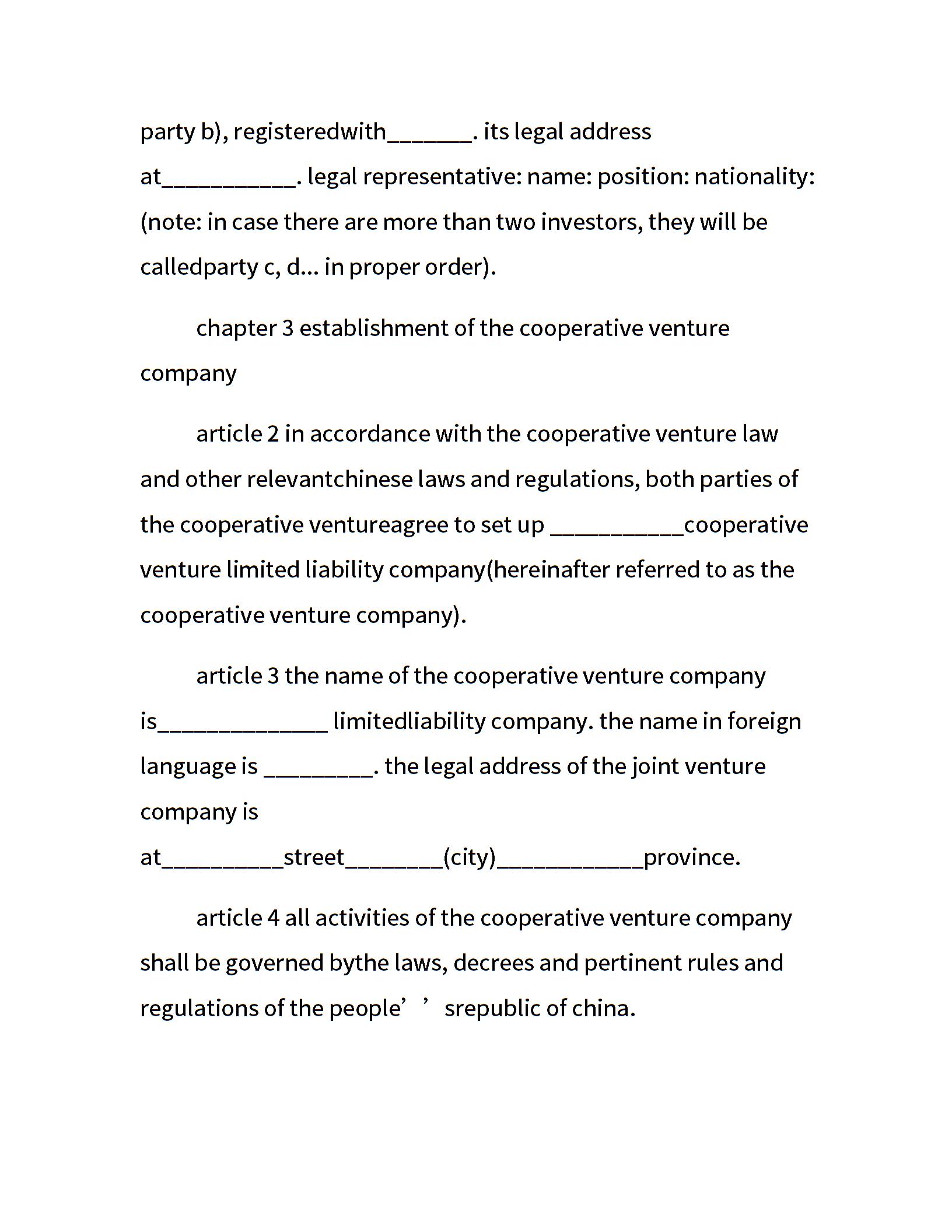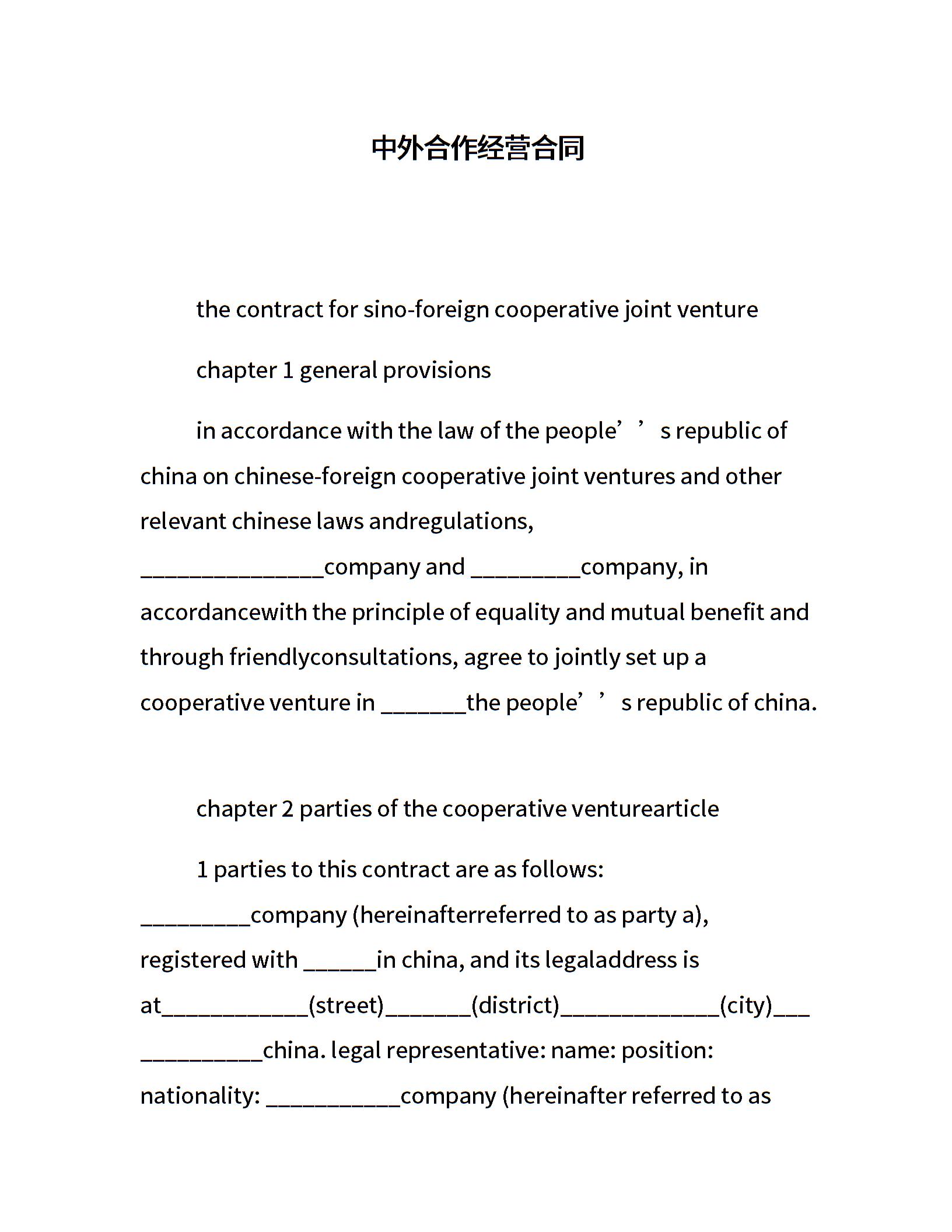 中外合作经营合同
