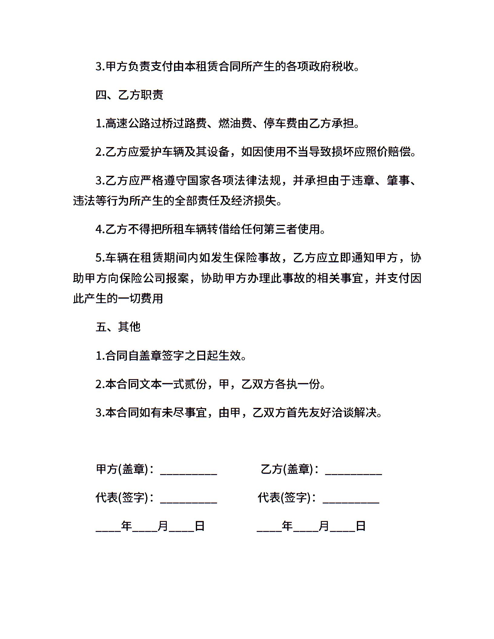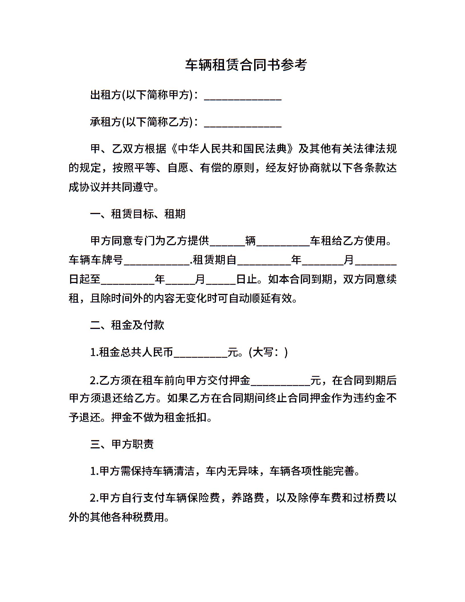车辆租赁合同书参考