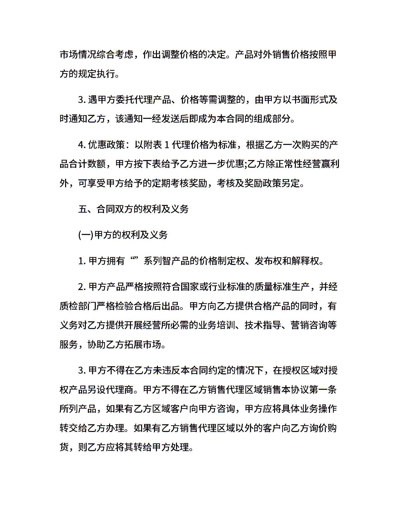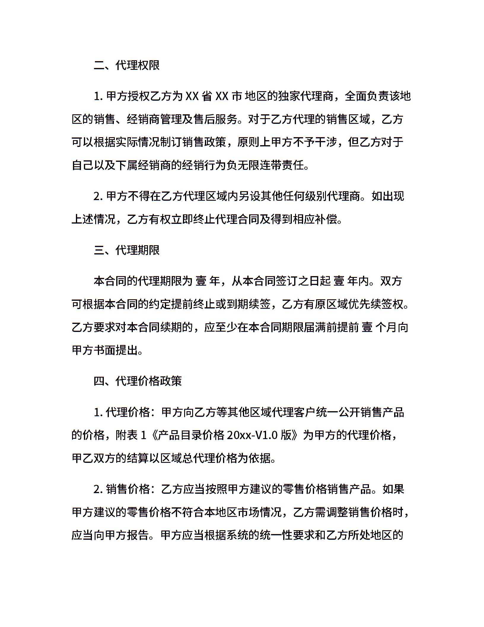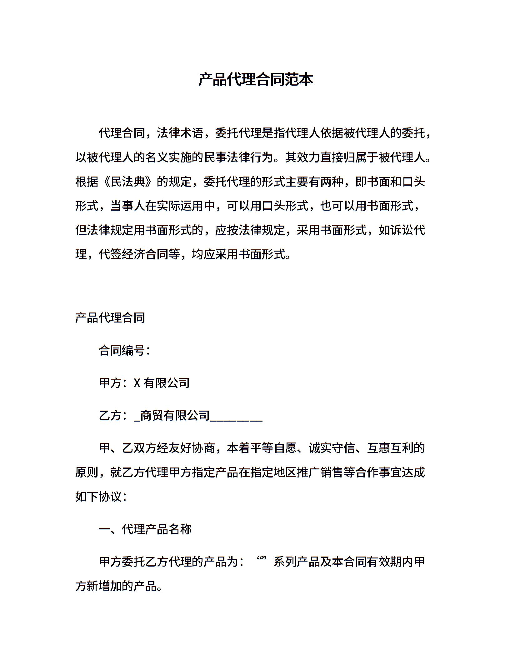 产品代理合同范本