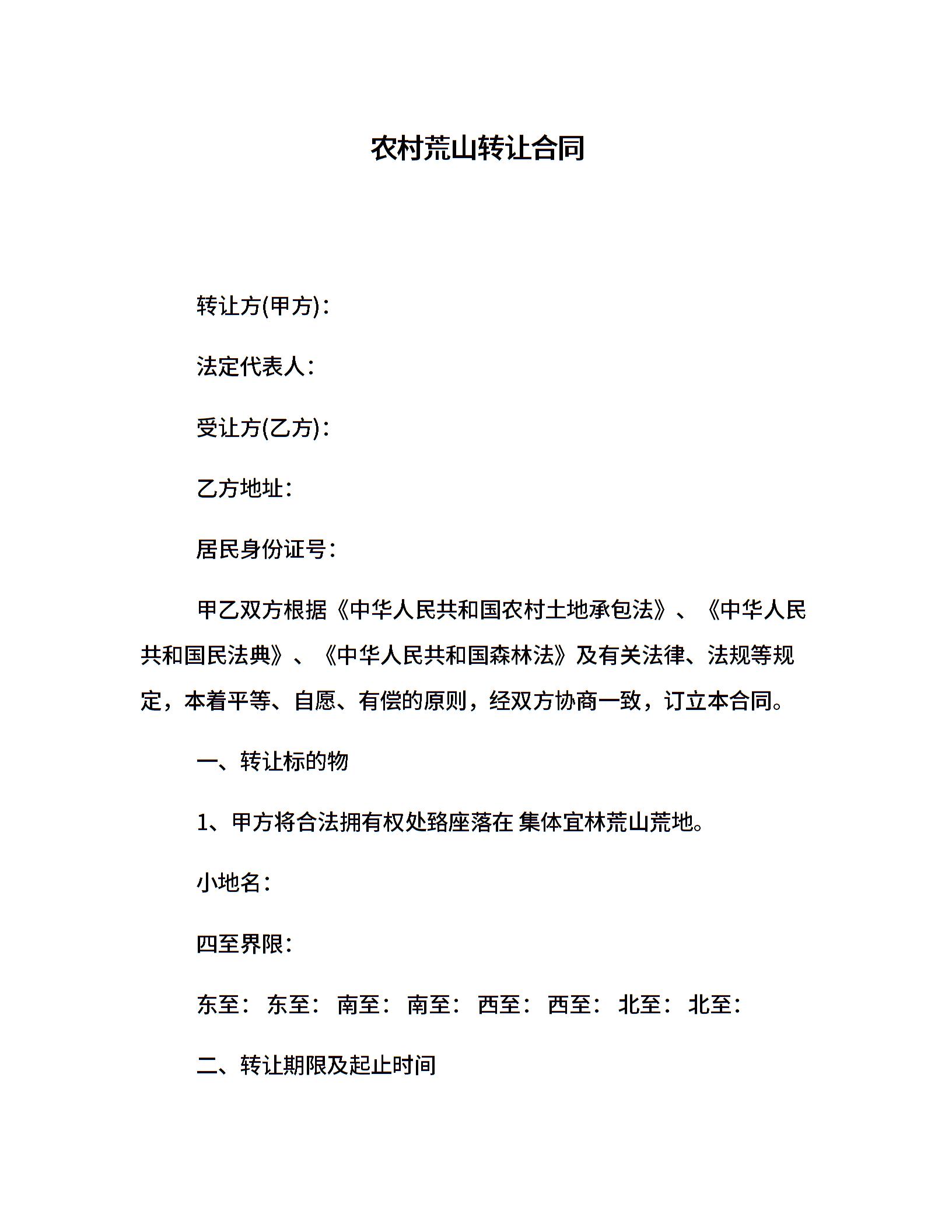农村荒山转让合同