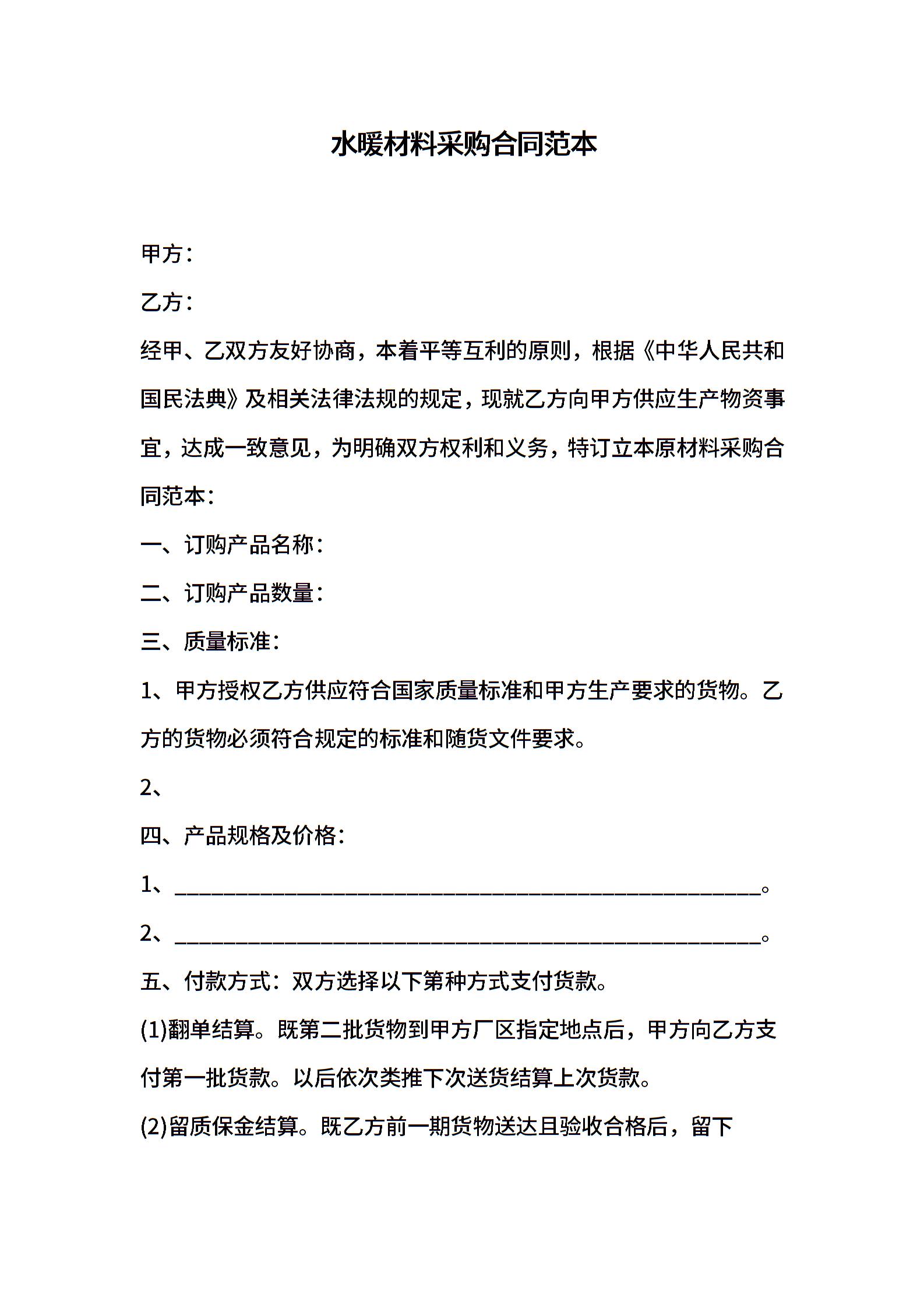 水暖材料采购合同范本